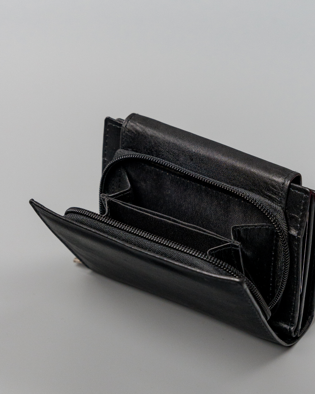 Ta model ima dva ločena dela – enega z zapiranjem na pritisk, drugega z varno zadrgo. Te rešitve preprečujejo nenamerno odpiranje denarnice.