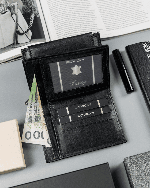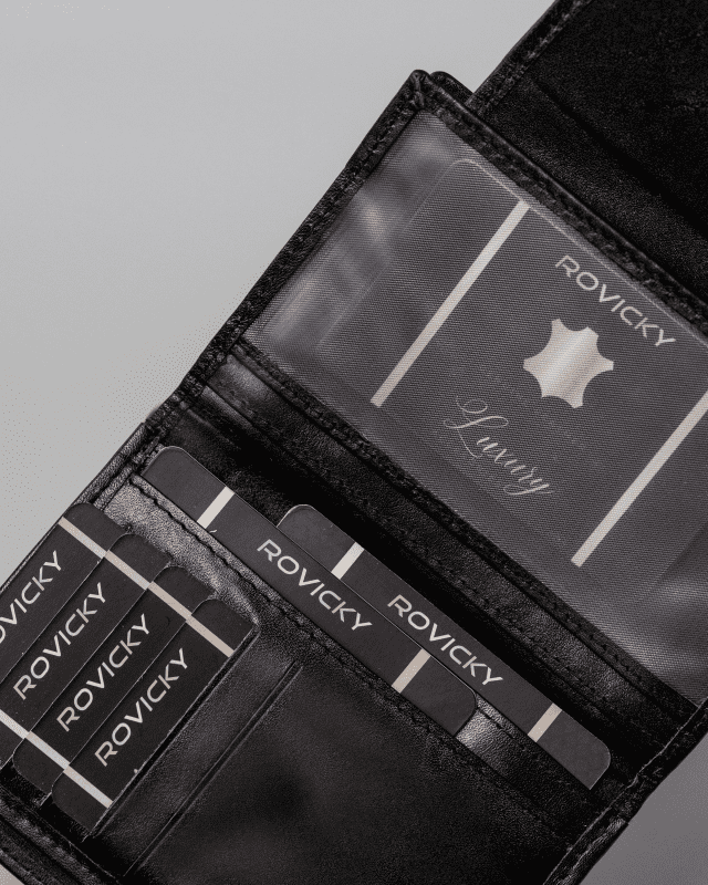 lahko se prilega v 2 prostorne, odprte predelke, všite po celotni širini denarnice; Parametri ✅ Blagovna znamka: