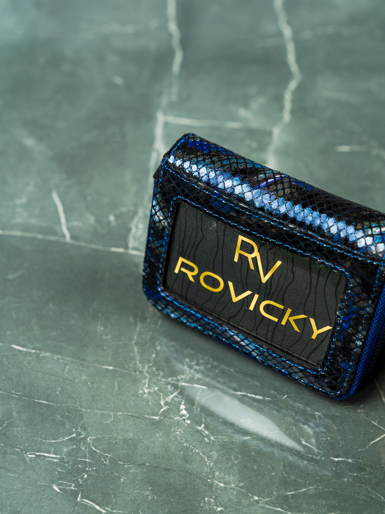 RFID se nanaša na tehnologijo, ki za prenos podatkov uporablja radijske valove. Uporablja se v tehnologiji brezstičnih bančnih kartic. Denarnice Rovicky z RFID zaščito imajo v notranjosti poseben material, ki ščiti bančne kartice pred napadi RFID bralnikov. Kako deluje: Če imate denarnico v žepu hlač, žepu jakne itd., lahko nekdo postavi čitalnik črtne kode blizu vašega žepa in skenira podatke kartice. Če je vaša kartica v denarnici, zaščiteni z RFID, čitalnik ne bo deloval. Vaše kartice/denar so varni!