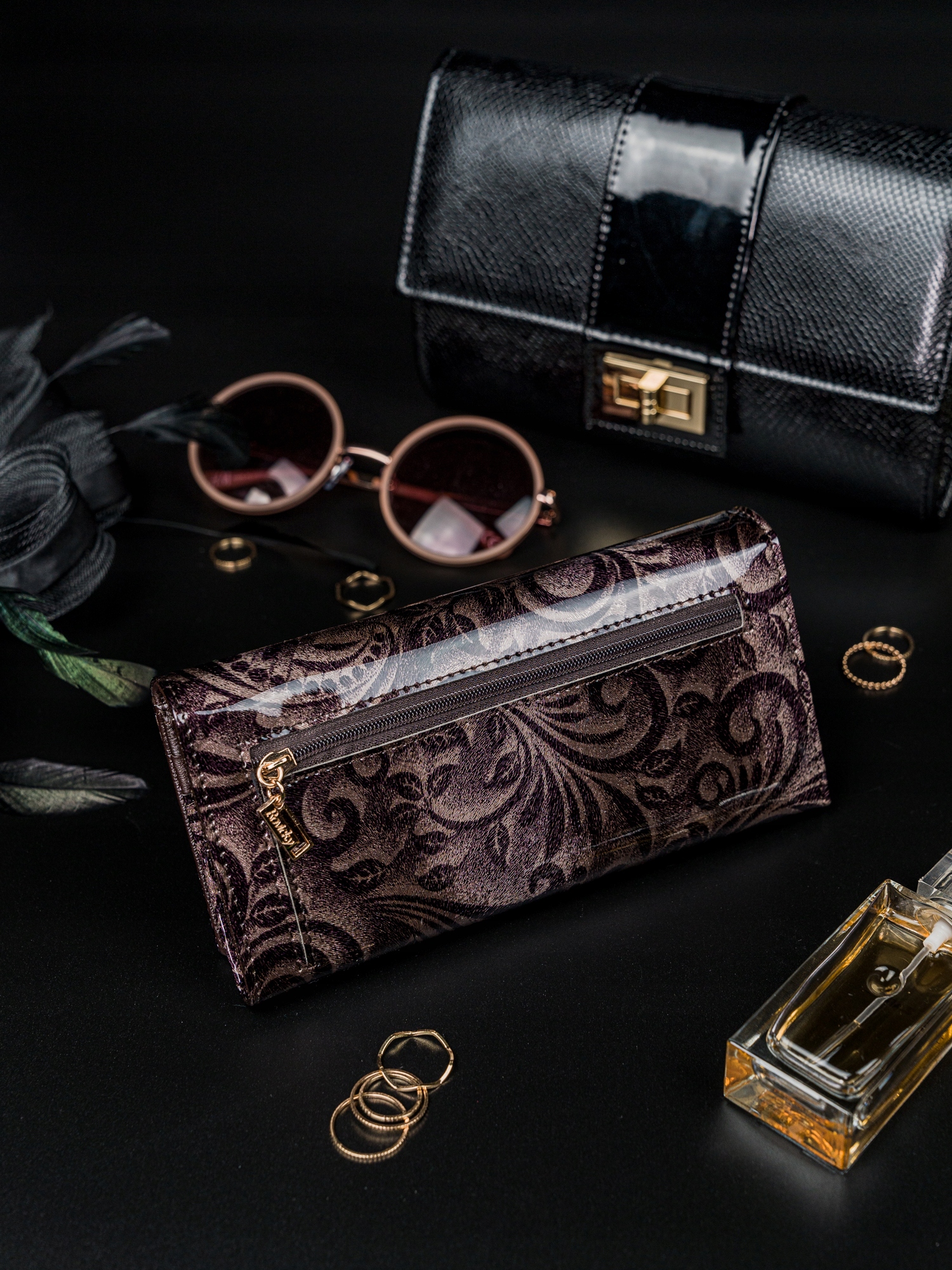 Denarnica je izdelana iz najkakovostnejšega pravega usnja, ki je neverjetno mehko na dotik in zelo trpežno, zato jo boste lahko uporabljali dolgo časa in z neverjetnim užitkom. Lakasto usnje na zunanji strani in mat usnje na notranji strani – popolna kombinacija za odločno in elegantno žensko.