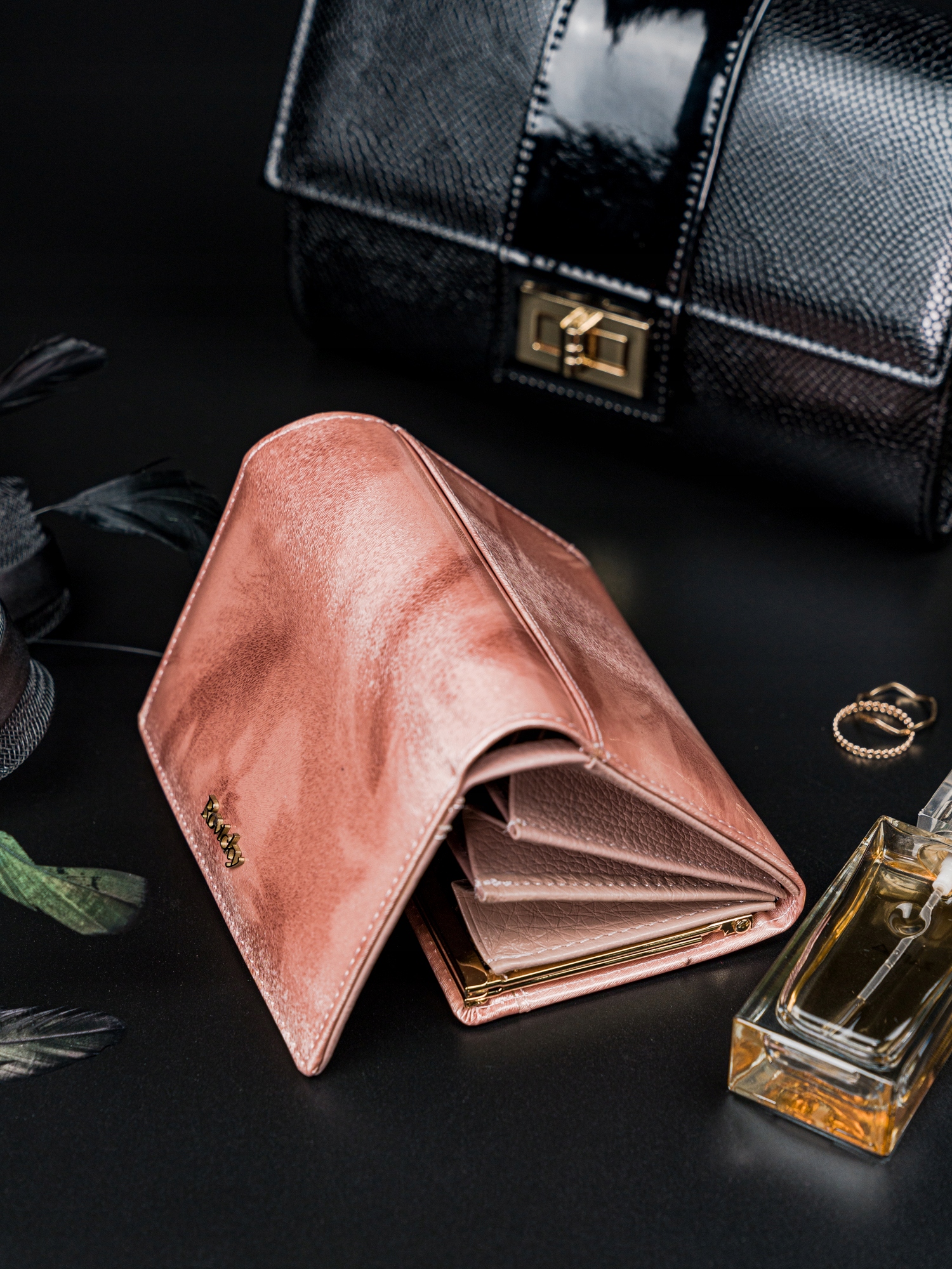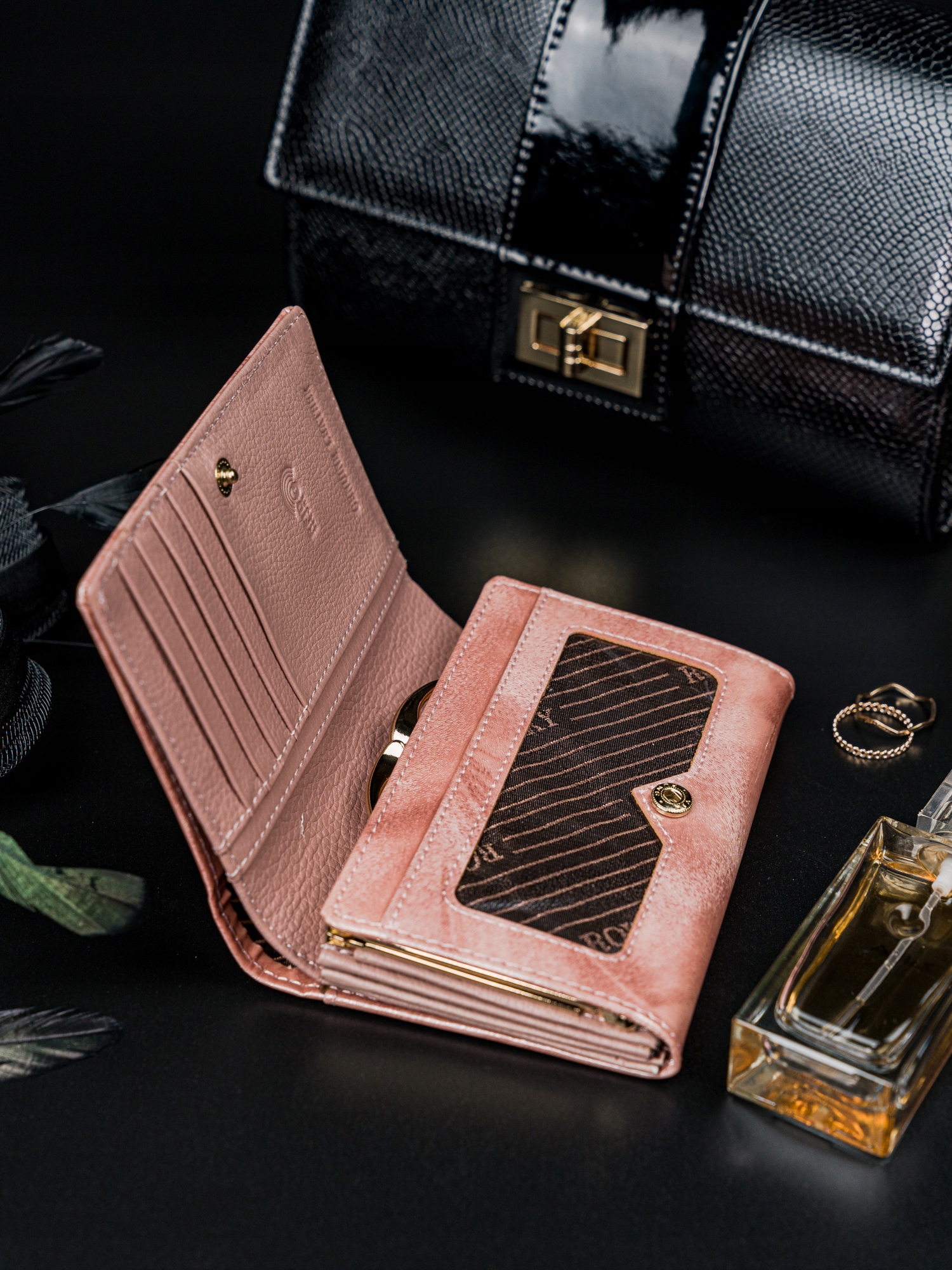 Ta izjemno praktična in elegantna denarnica v edinstvenem odtenku roza, ki odbija svetlobo v več barvah, je kot nalašč za ljubitelje manikure z mačjim očesom. Od danes naprej lahko svoje najljubše stile nohtov uskladite z našimi izdelki.