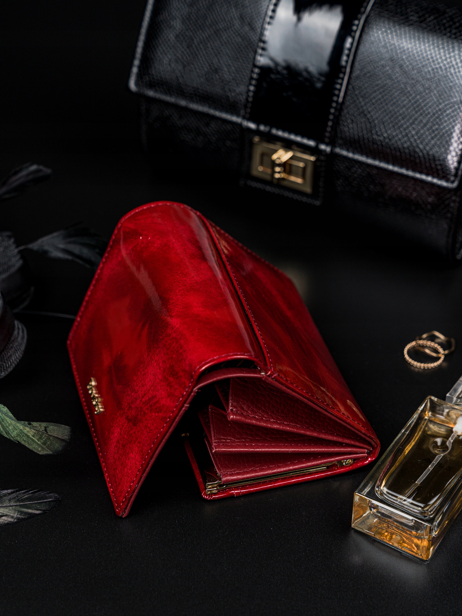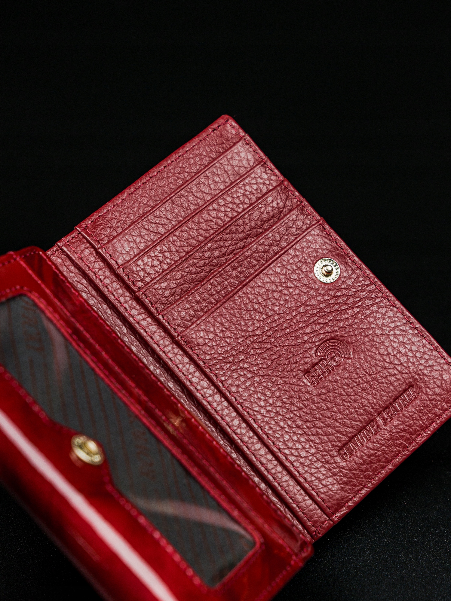 Ta izjemno praktična in elegantna denarnica v edinstvenem odtenku rdeče, ki odbija svetlobo v številnih barvah, je kot nalašč za ljubitelje manikure z mačjim očesom. Od danes naprej lahko svoje najljubše stile nohtov uskladite z našimi izdelki.