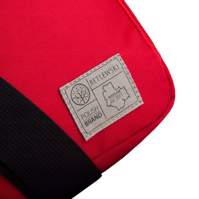 Športna torba BETLEWSKI majhna torba za čez ramo Torba Betlewski je odlična izbira, ker: je izdelana iz močnega, trpežnega materiala kljub svoji majhnosti je izjemno prostorna sešita je iz blaga v sočni rdeči barvi odlikuje jo edinstven dizajn Majhna, rdeča torba – vse imate pri roki Torba majhne velikosti, a odlične funkcionalnosti je preverjen način za shranjevanje denarnice, ključev ali telefona. Izdelana je iz močnega, gosto tkanega materiala v tako intenzivnem rdečem odtenku, da je nihče ne bo spregledal ravnodušno. Preprost, klasičen dizajn naredi to majhno torbico popolno za urbani slog. Izberite dobro blagovno znamko in lepe detajle. Na sprednji strani torbe je izjemno eleganten našitek z logotipom blagovne znamke Betlewski. Pritegne pozornost in sporoča, da izdelek odlikujejo visoka kakovost in dobro oblikovane podrobnosti. Izvirnost torbe potrjujejo tudi kartonske in blagajne etikete. Vodoravni žep na sprednji strani torbe Na sprednji strani torbe je vodoravni žep, ki se zapira z zadrgo. Zaključen je s kratko vrvico v kontrastni barvi, ki olajša odpiranje in zapiranje žepa. V tem žepu lahko shranite, kar radi imate pri roki – vstopnice, kartice zvestobe ali službeno izkaznico. Vrzite ga čez ramo – ima udoben trak. Na torbo je prišit dolg trak. Ima možnost nastavitve dolžine do maks. 130 cm, tako da ga lahko po želji podaljšate ali skrajšate. Prostorna notranjost – vanjo lahko spravite veliko stvari. Glavni predal torbe se zapira z zadrgo. V notranjosti bo veliko predmetov – telefon, zvezek, denarnica ali majhna steklenica vode. Presenečeni boste, koliko predmetov se lahko prilega v tako majhno notranjost! Notranje dimenzije glavnega predala so: 23 cm x 15 cm x 8 cm. Telefon v posebnem žepu V notranjosti torbe je velik odprt mrežasti žep, ki je na primer idealen za pametni telefon. Zahvaljujoč tej podrobnosti ga boste imeli vedno pri roki! Žep z ježkom in vodoodporna podloga V notranjosti torbe je žep z ježkom, ki je idealen za shranjevanje predmetov, ki jih ne želite izgubiti. Podloga v notranjosti torbe je izdelana iz vodoodpornega materiala, ki ščiti vsebino pred poplavljanjem ali mokroto. Stene so ojačane s peno, tako da je vse, kar hranite v notranjosti, dobro zaščiteno pred poškodbami ali zmečkaninami. Preprost dizajn – eleganten in moderen. Hrbtna stran torbe je gladko obdelana. Univerzalna oblika naredi torbo popolno ne le za ženske, ampak tudi za moške. To je tipičen unisex model, naše torbe obožujejo tako ženske kot moški. Indeks parametrov: EPO-5148 material: sintetika barva: rdeča znamka: BETLEWSKI zunanja širina: 23 cm zunanja višina: 16 cm zunanja globina: 8 cm maks. dolžina traku: 130 cm razred vodoodpornosti: IPX 1 – zaščita pred vodo, enakovredno padavinam, ki trajajo do 10 minut, z intenzivnostjo 3–5 mm