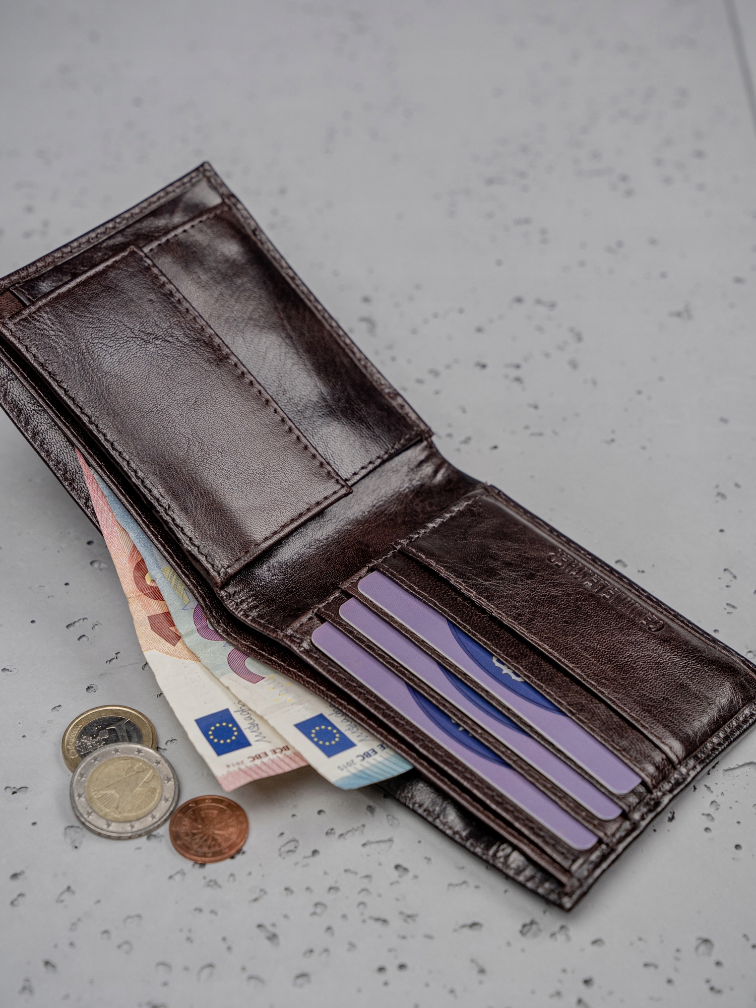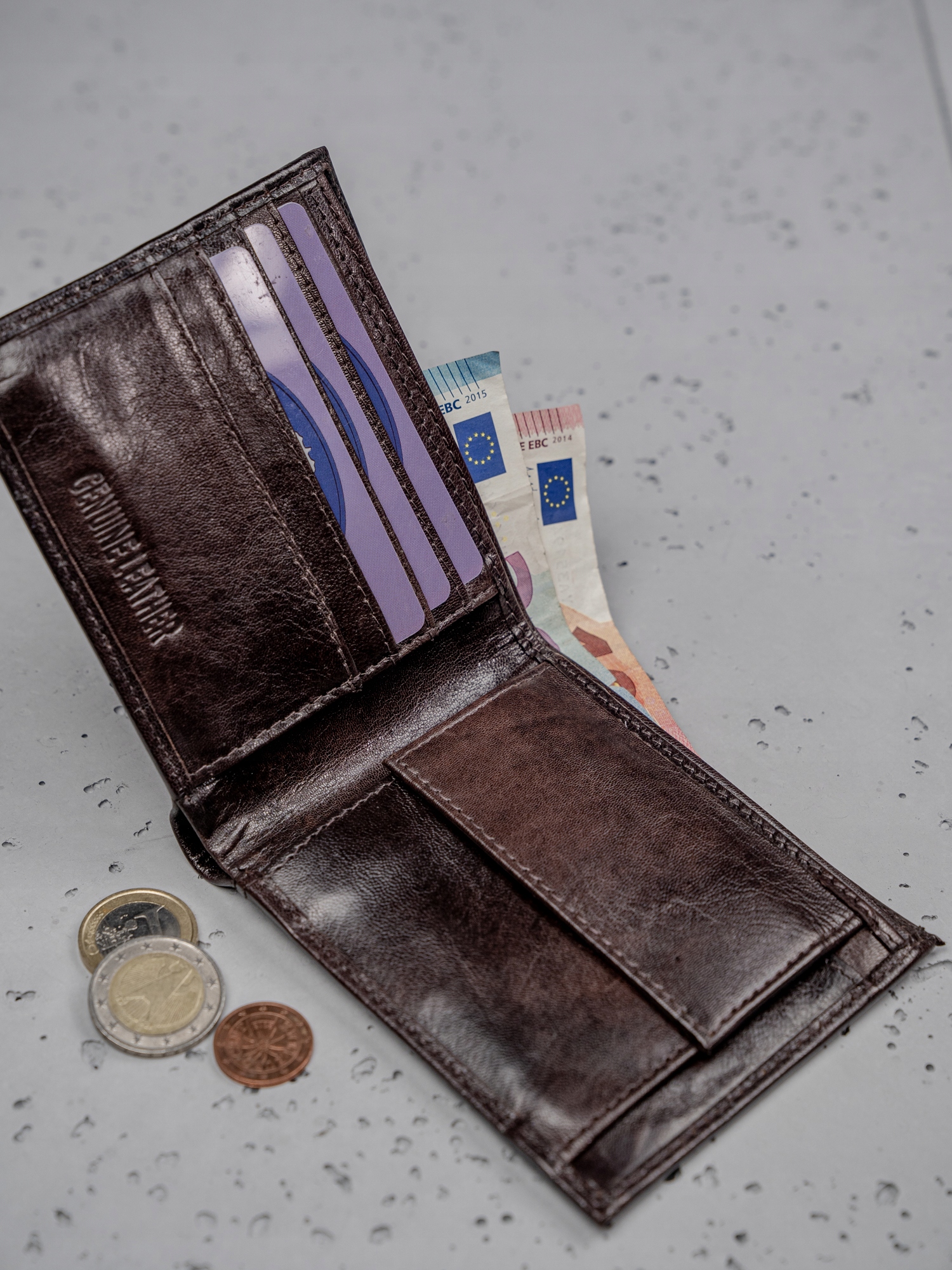 Moška usnjena denarnica najvišje kakovosti, VISOKE KAKOVOSTI, znamka Always Wild Denarnica z značajem, edinstvenim slogom in neprimerljivo vzdržljivostjo. Vsaka denarnica je popolnoma izdelana iz visokokakovostnega govejega usnja. Usnje je mehko in zelo prijetno na dotik. Vrhunski izdelek za najbolj zahtevne moške.