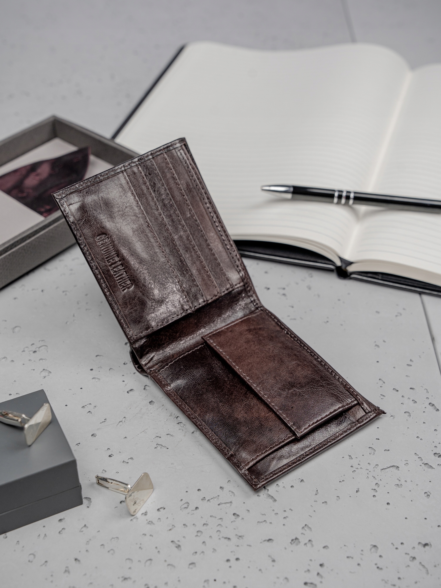 Usnje, iz katerega so izdelane te denarnice, je trenutno najbolj moden material. Zaradi svoje naravne teksture in mat zaključka daje izdelkom retro slog in edinstven značaj. Okrasni rob in čudovit logotip na sprednji strani denarnice prav tako dokazujeta visoko kakovost izdelka. To ne predstavlja le garancije blagovne znamke, temveč služi tudi kot čudovit okras, ki se odlično ujema z barvo izdelka. Vsi odtenki rjave, sive in črne so brezčasne barve. Poleg tega, da so to najbolj praktične barve, ker so nevidne, ko se umažejo, nikoli ne gredo iz mode. Ti odtenki so temelj elegance in so popolna izbira za moške.