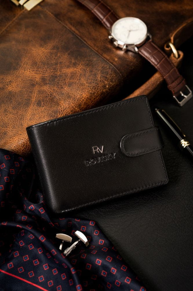 Klasična moška usnjena denarnica v ležeči orientaciji – Rovicky Celoten opis