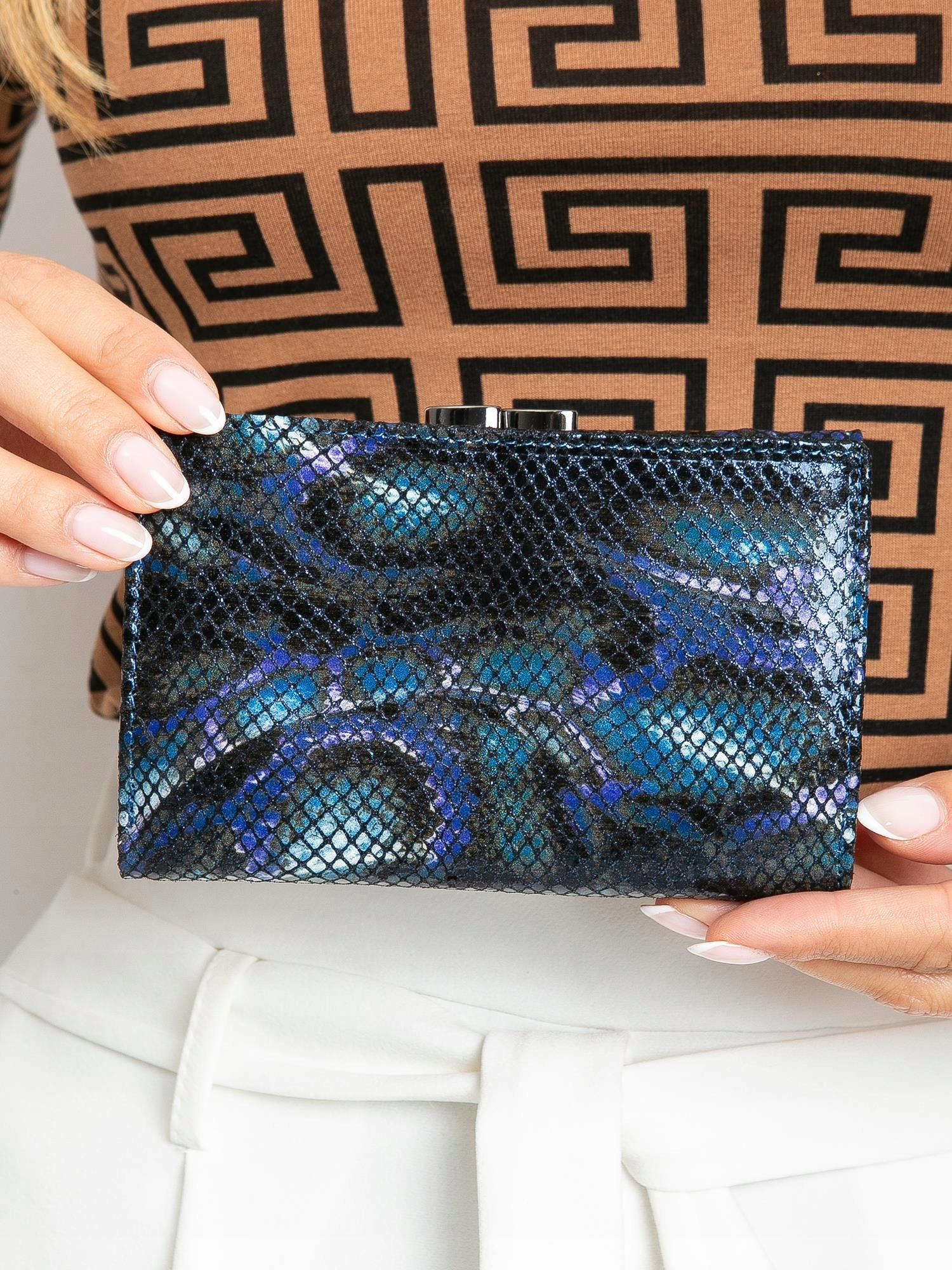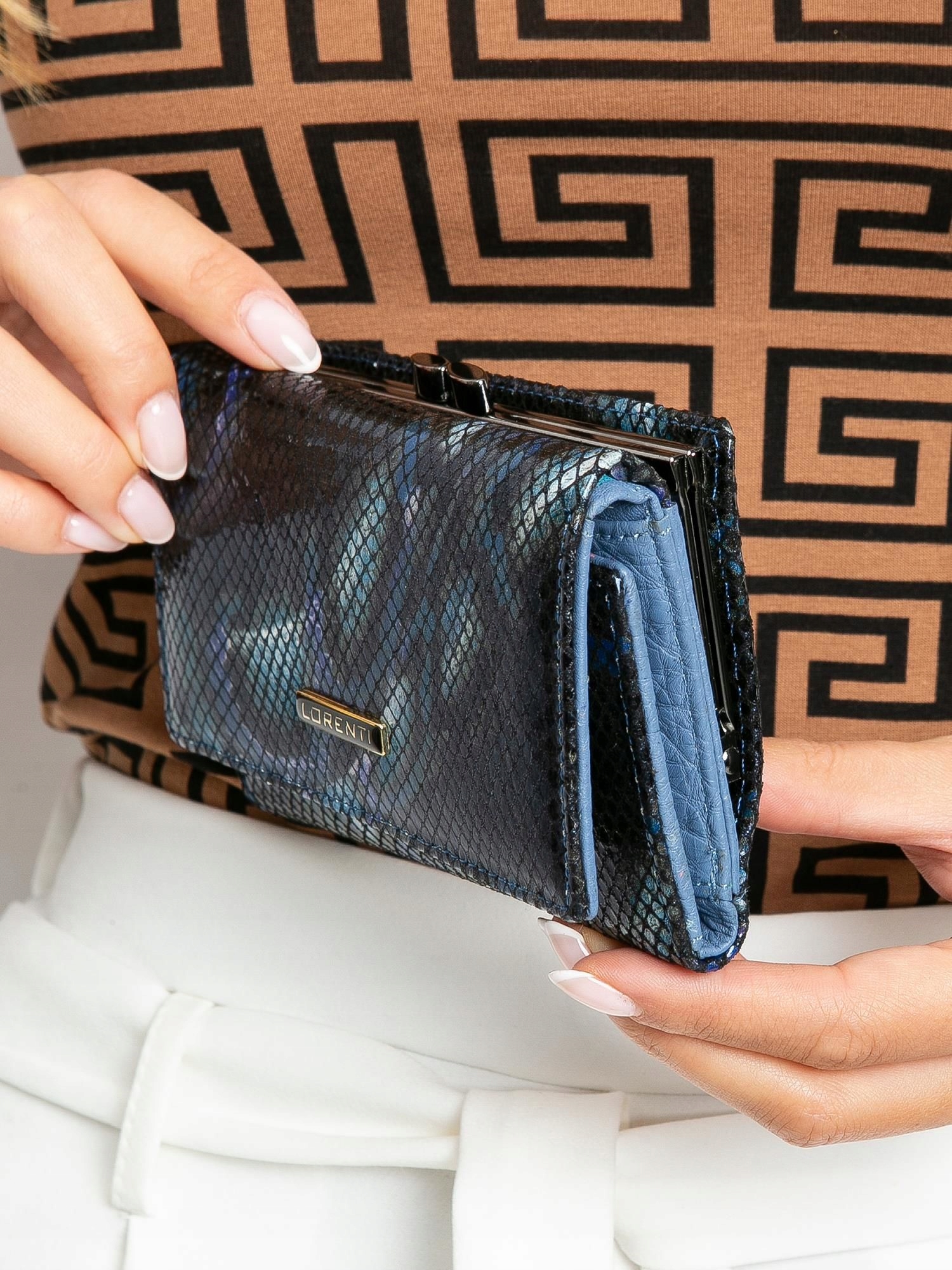 Ženska usnjena denarnica z RFID zaščito znamke LORENTI, z zapiranjem na gumb in zaponko, z motivom kačje kože.