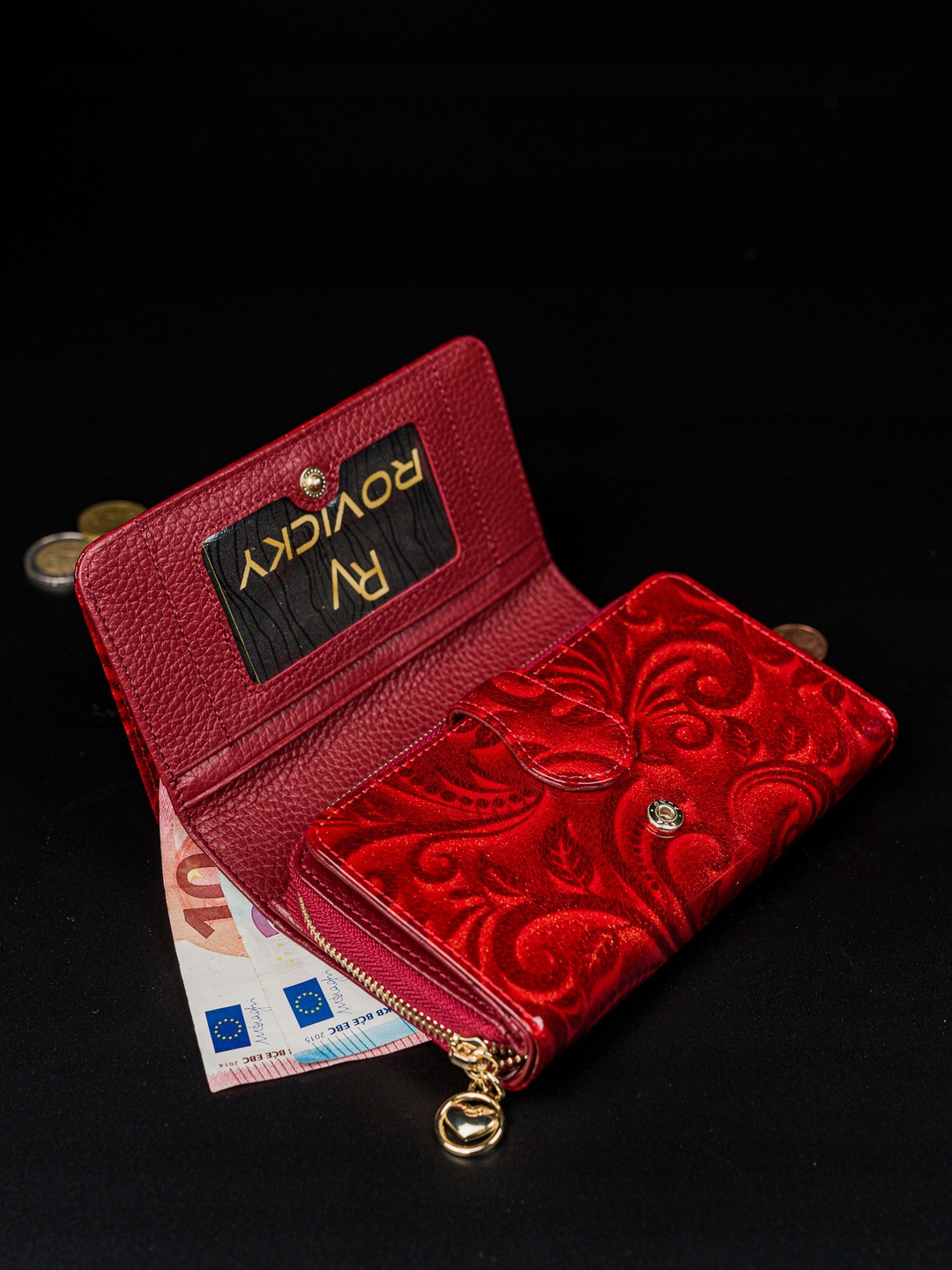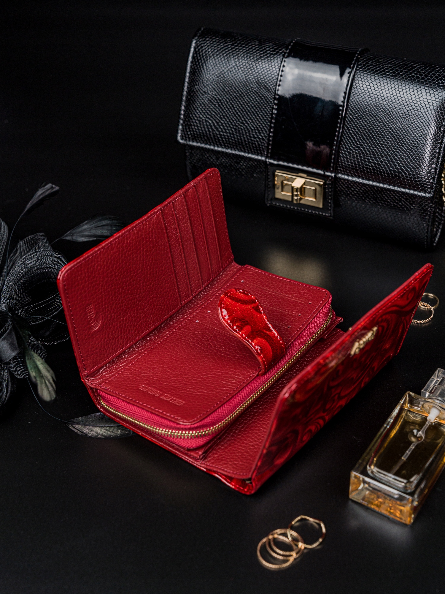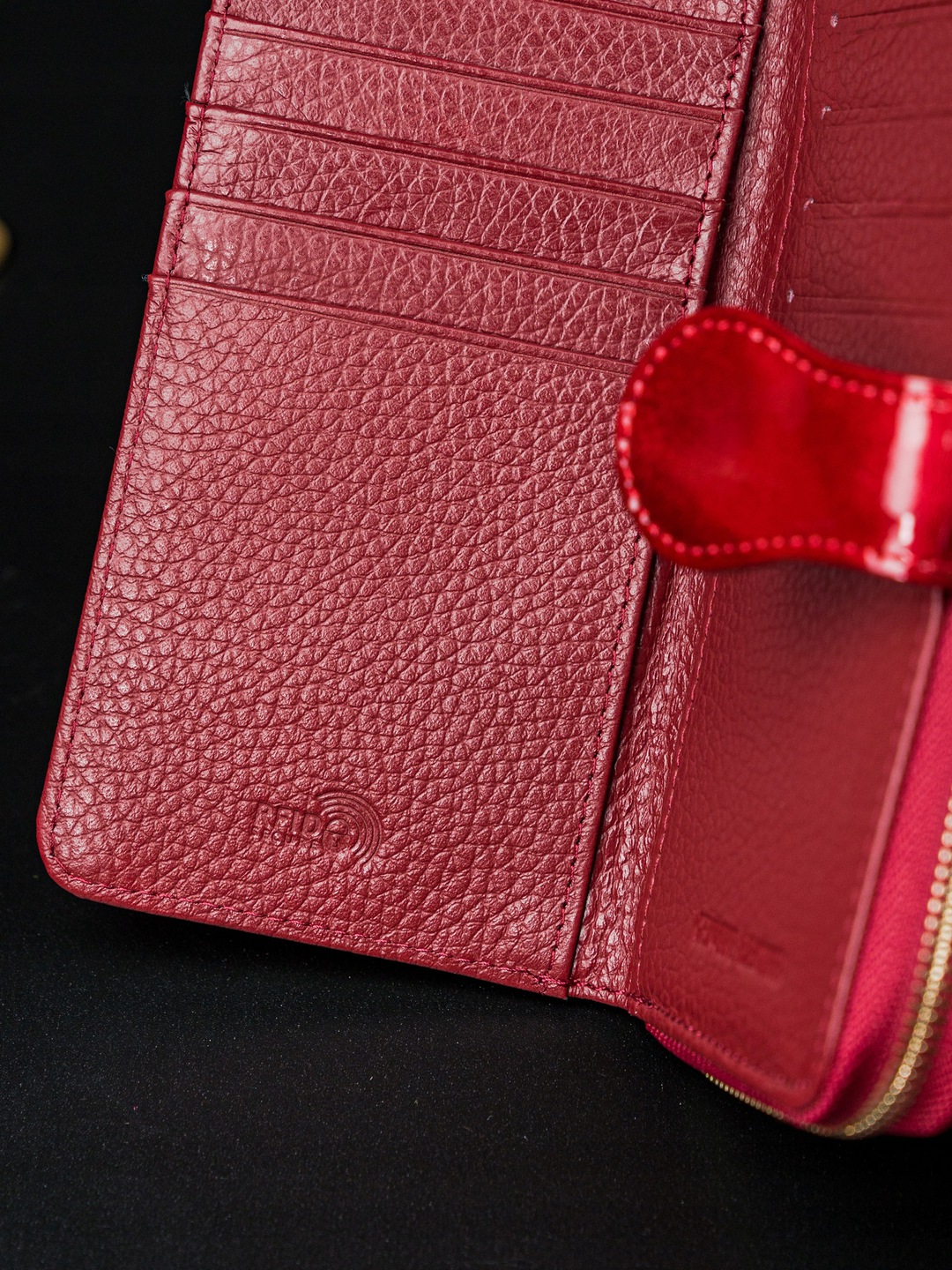 Rdeča denarnica iz pravega usnja je videti najbolje in je najbolj privlačna večini žensk. Pravijo, da rdeče denarnice nosijo čustvene, energične, močne, pogumne in tekmovalne osebe. Dodatek rdeče denarnice pomaga ženskam, da izstopajo iz množice. Lastnice denarnic v tej barvi običajno preživljajo svoje družine in lahko zaslužijo velike vsote denarja. Po feng šuiju denar ljubi rdečo barvo, zato ne „pobegne“ pred rdečimi denarnicami. Zato bo takšna denarnica želja po blaginji. Ali ne razmišljamo intuitivno enako, ko izbiramo rdečo denarnico zase ali za darilo?