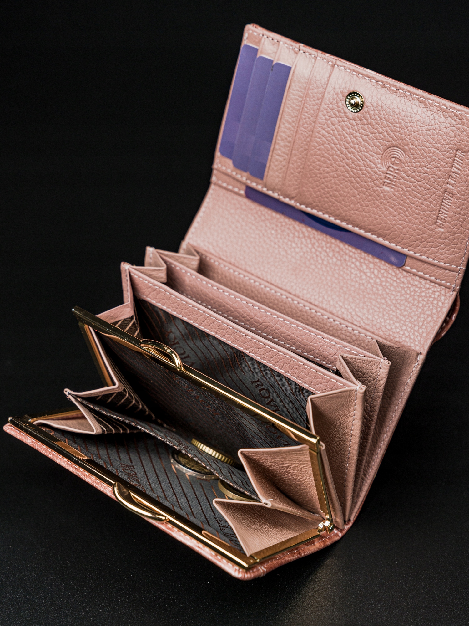 ✅ za bankovce obstaja ločen predal, ki se razteza praktično čez celotno širino denarnice;