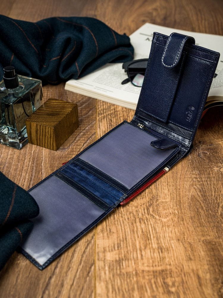 Majhna denarnica s številnimi praktičnimi predali omogoča shranjevanje velikih količin gotovine, kartic in dokumentov; - Varnost