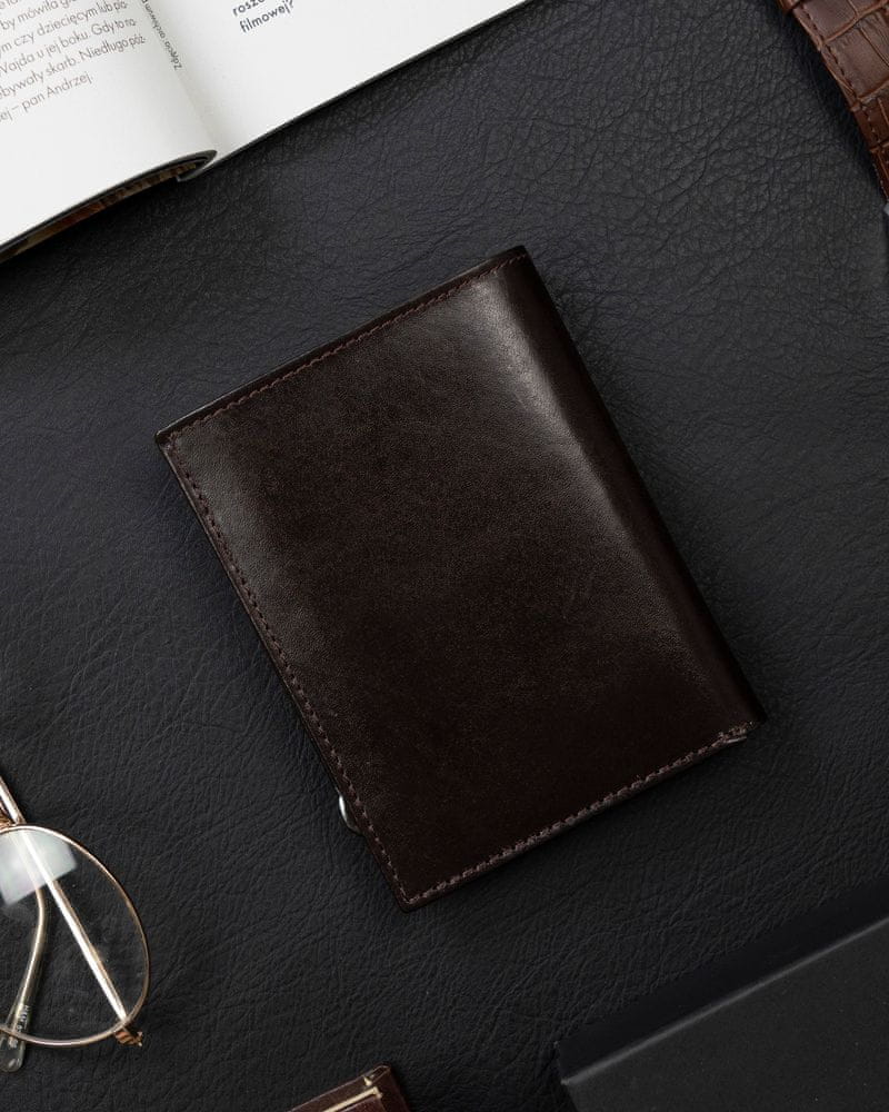 Moška navpična denarnica s srebrnim poudarkom, naravno polnozrnato usnje – Rovicky