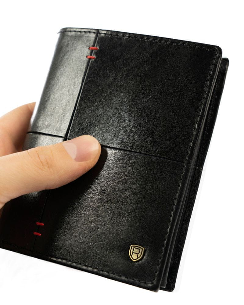 shumee Moška navpična denarnica z rdečimi šivi, naravno zrnato usnje - Rovicky