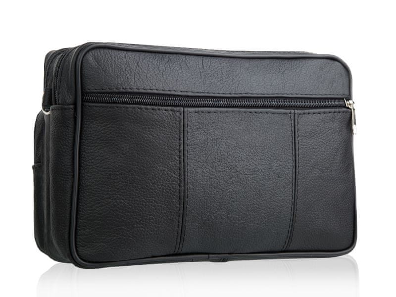 Velika, usnjena moška torbica, znamke Betlewski. Zakaj torbica znamke Betlewski? Kupujete izdelek, izdelan na Poljskem iz naravnega govejega usnja, edinstven dizajn, praktičen za uporabo. Na kratko, indeks: BSG-06, surovina: naravno usnje, znamka: BETLEWSKI, širina: 26 cm, višina: 16,5 cm, globina: 10,5 cm, dolžina ročaja: 20 cm. Dodatne informacije: POLJSKI IZDELEK. Torbica z blagovno znamko. Prostorna in funkcionalna torbica BETLEWSKI, izdelana na Poljskem iz visokokakovostnega naravnega usnja. Kovinski elementi izdelka, kot so zadrge in ročaji, so trdni in trpežni. Izdelek ima edinstvene detajle, ki potrjujejo njegovo izvirnost – kartonske in blagajne etikete ter črno-srebrn kovinski logotip blagovne znamke. Na torbo je priložen tudi vzorec usnja, iz katerega je bila izdelana. Izdelana s pozornostjo do vsake podrobnosti in popolnoma zapakirana vrečka zagotavljata, da bo to uspešno in edinstveno darilo! Prostorna notranjost Torba je sestavljena iz dveh velikih predalov, ki se zapirata z zadrgo. Poleg tega ima spredaj 1 širok žep in 1 manjši predal, ki se prav tako zapira z zadrgo. Ročaj Torba ima snemljiv usnjen ročaj, ki ga je mogoče pritrditi na levo ali desno stran torbe. Dodaten žep Na zadnji strani torbe je še en žep z zadrgo. Potrdilo o pristnosti Izdelku je priloženo potrdilo o pristnosti, ki potrjuje kakovost usnja, iz katerega je bil izdelan. Ta dodatek poudarja edinstvenost in izvirnost izdelka, kar je še dodatno cenjeno, če je denarnica darilo.