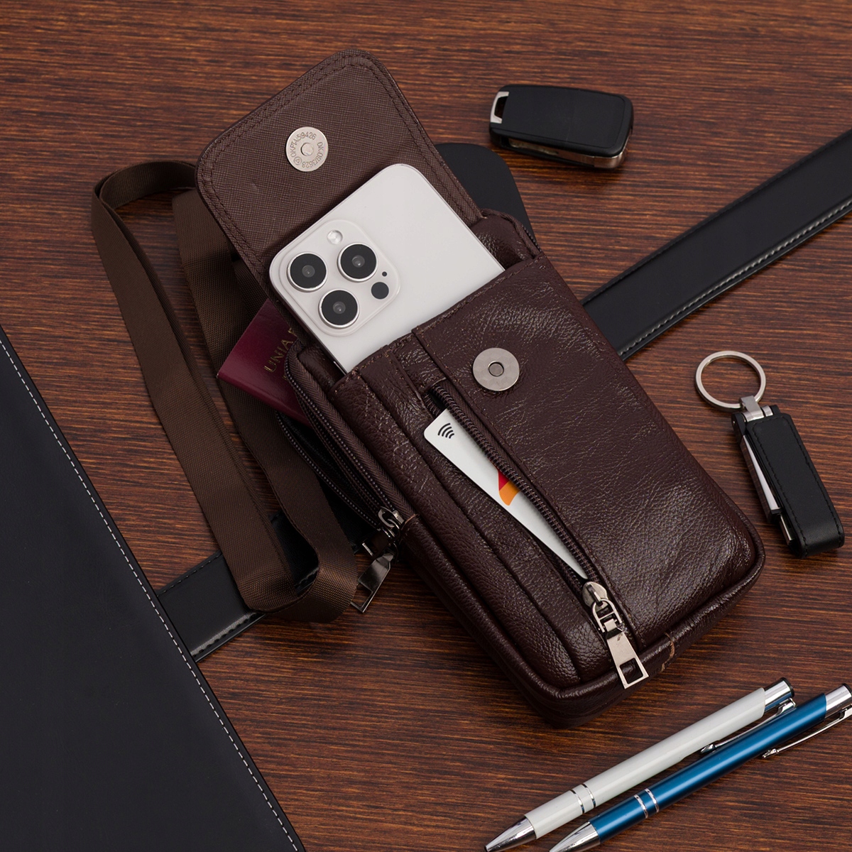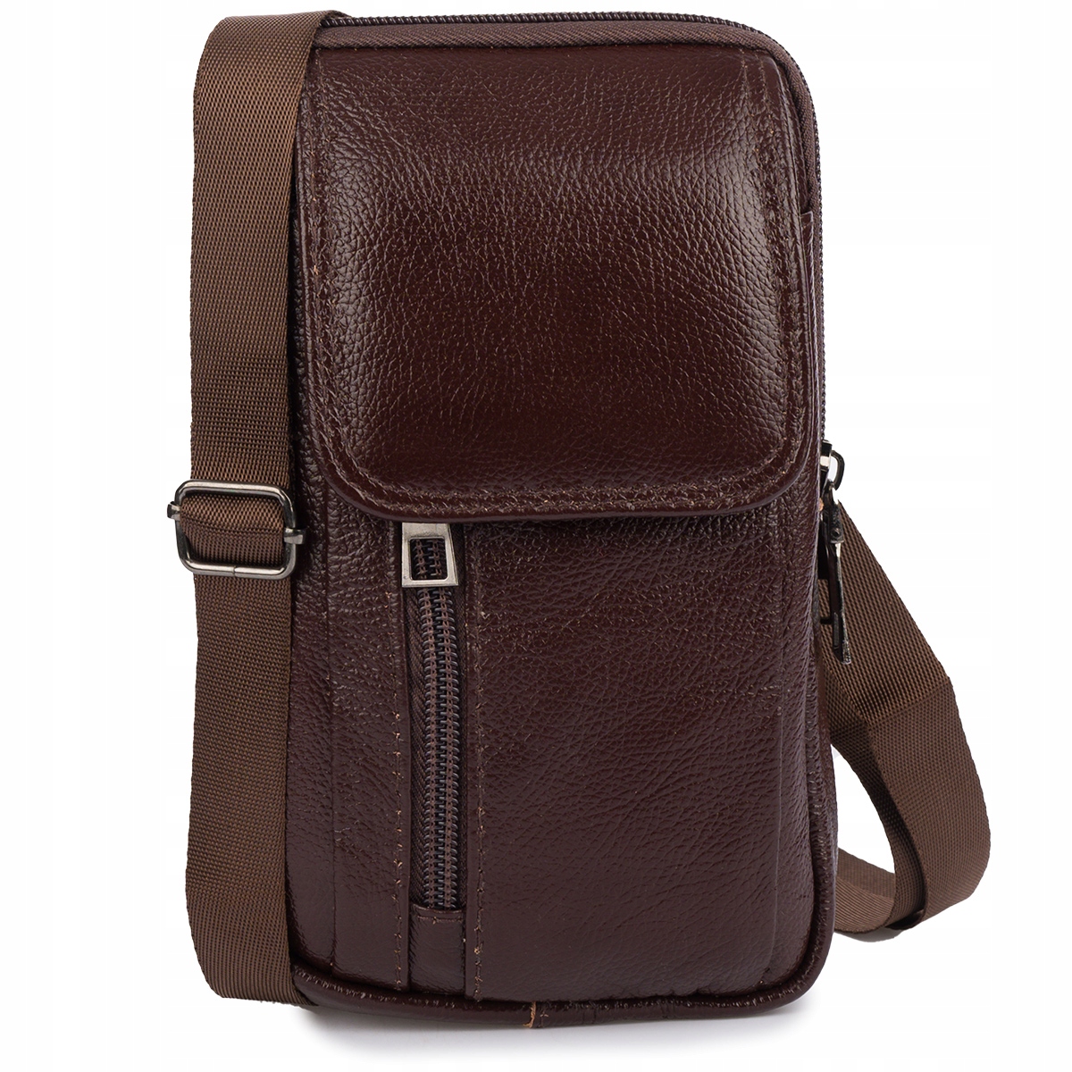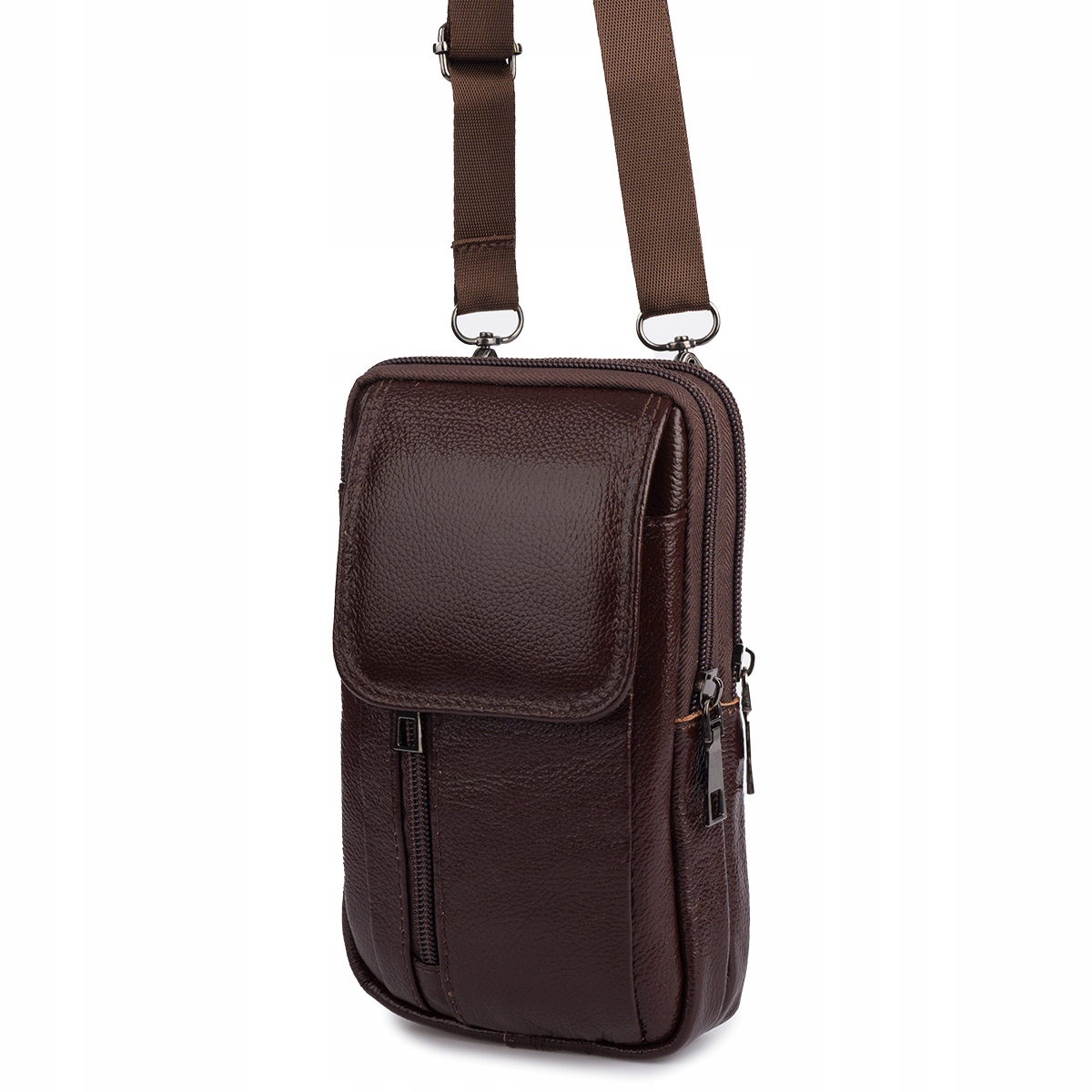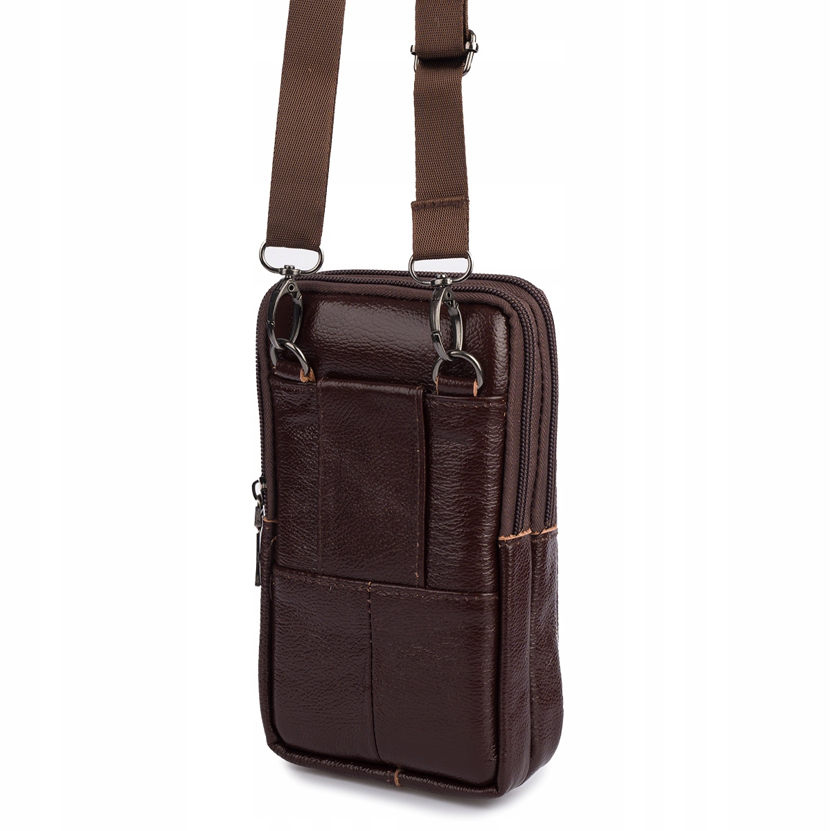 Moška torba za čez ramo, denarnica za telefon, usnjena, velika prostornina, rjava Celoten opis