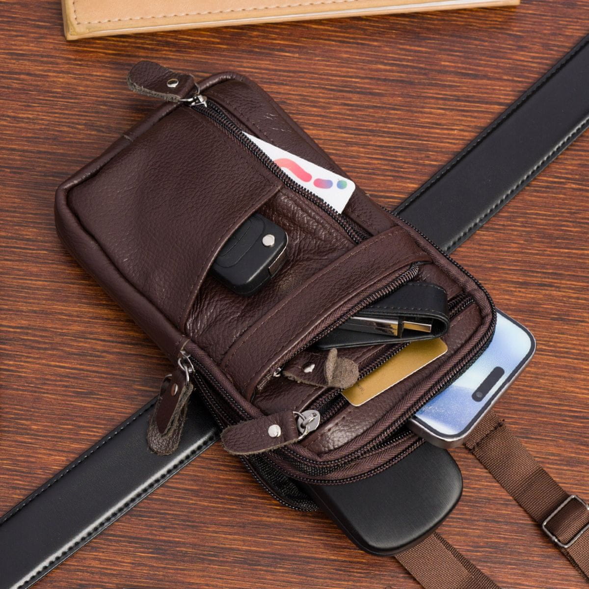 Moška torba za čez ramo, denarnica za telefon, usnjena, velika prostornina, rjava Celoten opis
