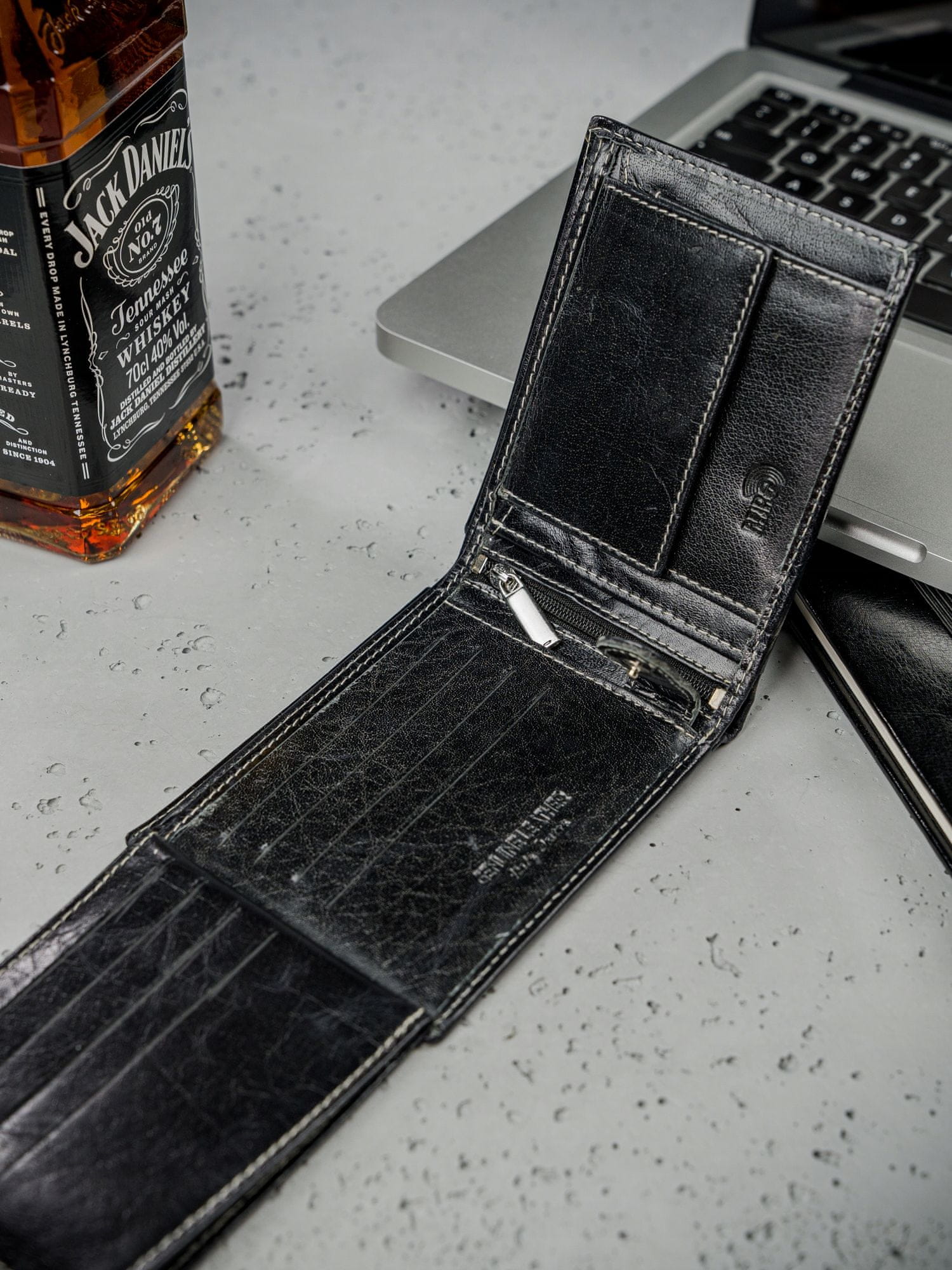 Usnje, iz katerega so izdelane te denarnice, je trenutno najbolj moden material. Zahvaljujoč svoji naravni, rahlo nagubani teksturi in mat zaključku daje izdelkom retro slog in edinstven značaj. Visoko kakovost izdelka dokazujeta tudi okrasna obroba in čudovit logotip , ki se nahaja na sprednji strani denarnice. Ne predstavlja le garancije blagovne znamke, temveč služi tudi kot čudovit dekorativni element, ki se odlično ujema z barvo izdelka. Vsi odtenki rjave, sive in črne so brezčasne barve. Poleg tega, da so najbolj praktične barve, ker se na njih ne vidi umazanija, nikoli ne gredo iz mode. Ti odtenki so temelj elegance in so popolna izbira za moške. Organizirajte svoje kartice