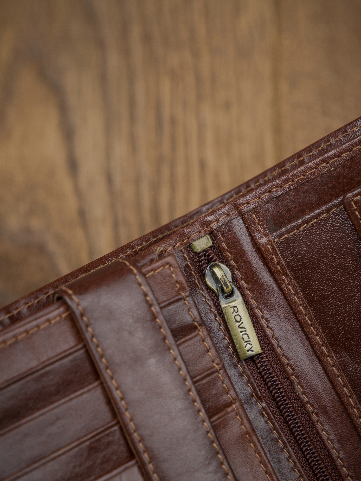 1 predalček z zadrgo v osrednjem delu denarnice. Predalca za dokumente sta prav tako podložena. To preprečuje drgnjenje pri neštetokratnem vstavljanju in odstranjevanju kartic iz predalov.