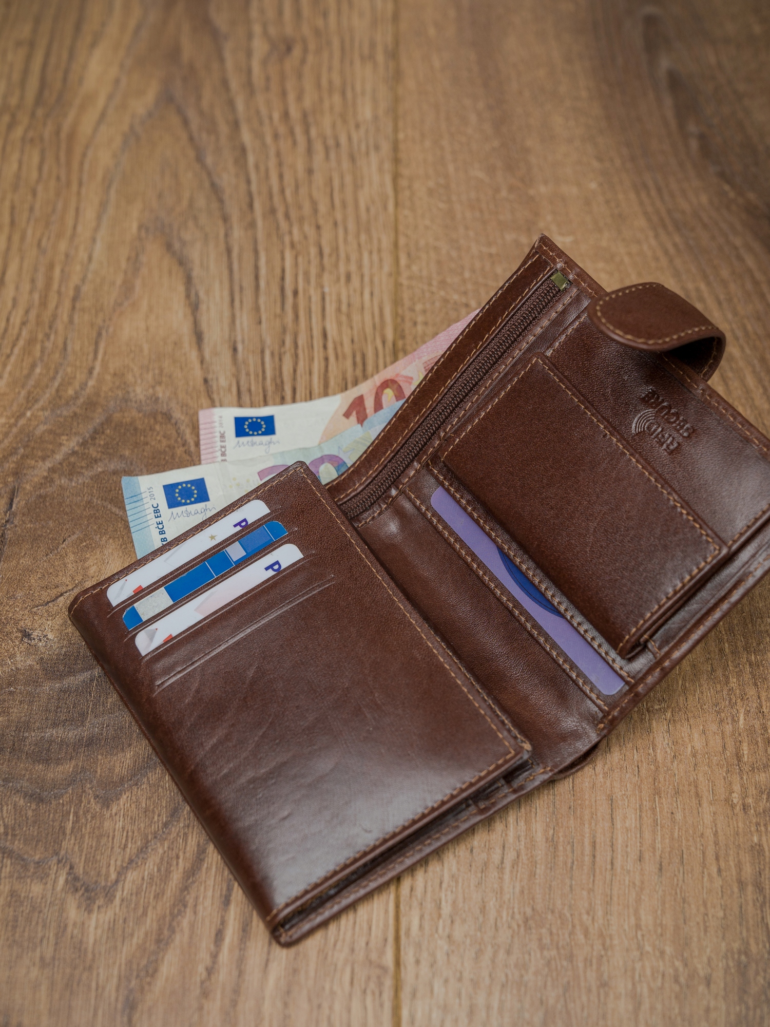 2 prozorna žepa za nekoliko večje dokumente, kot je na primer prometno dovoljenje v ovitku Ministrstva za motorna vozila. Zunanja zaponka je velika prednost. To preprečuje nenamerno odpiranje denarnice.