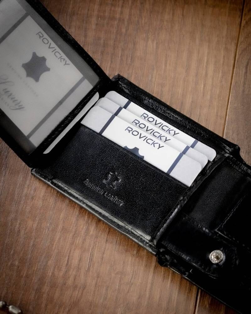 Visokokakovostna, velika moška denarnica iz pravega usnja, ki: