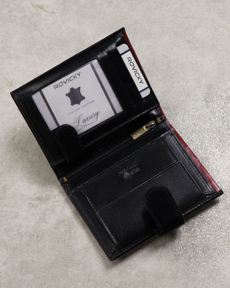 Ta denarnica je neverjetno funkcionalna. Notranjost je zasnovana tako, da sprejme vse vaše najpomembnejše predmete. Intuitivna razporeditev predalov in žepov zagotavlja udobje uporabe.
