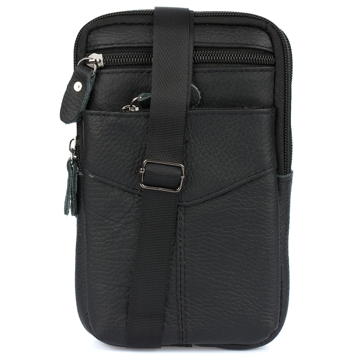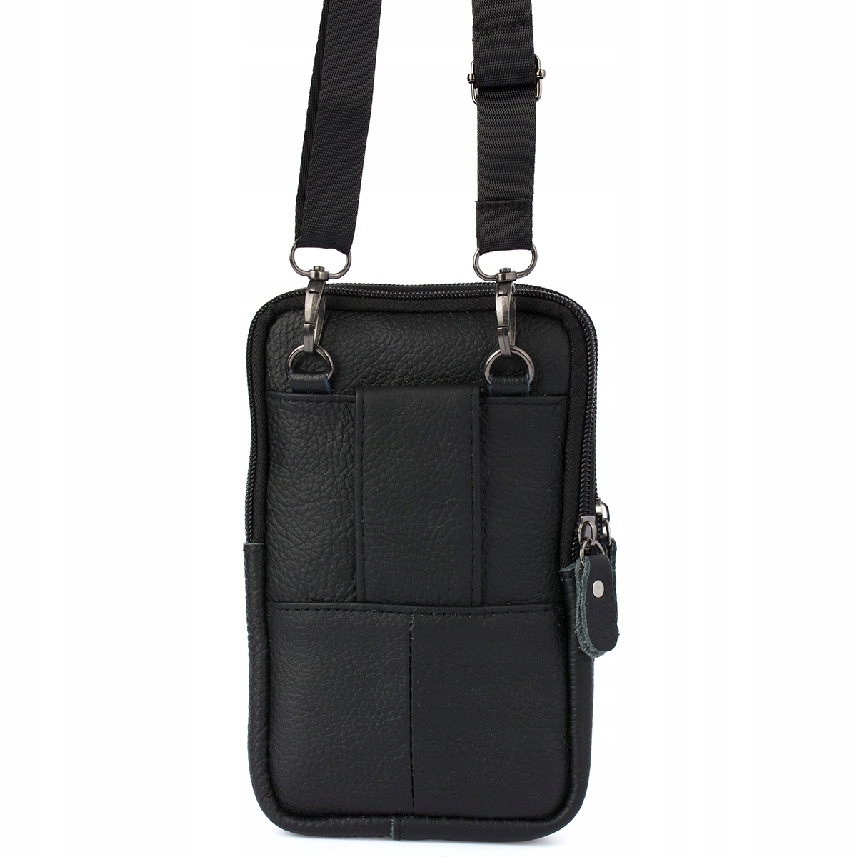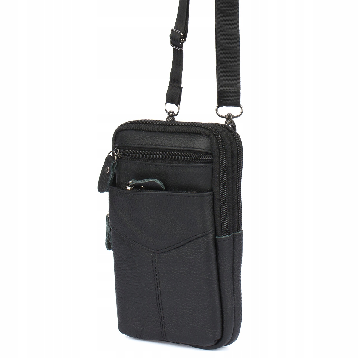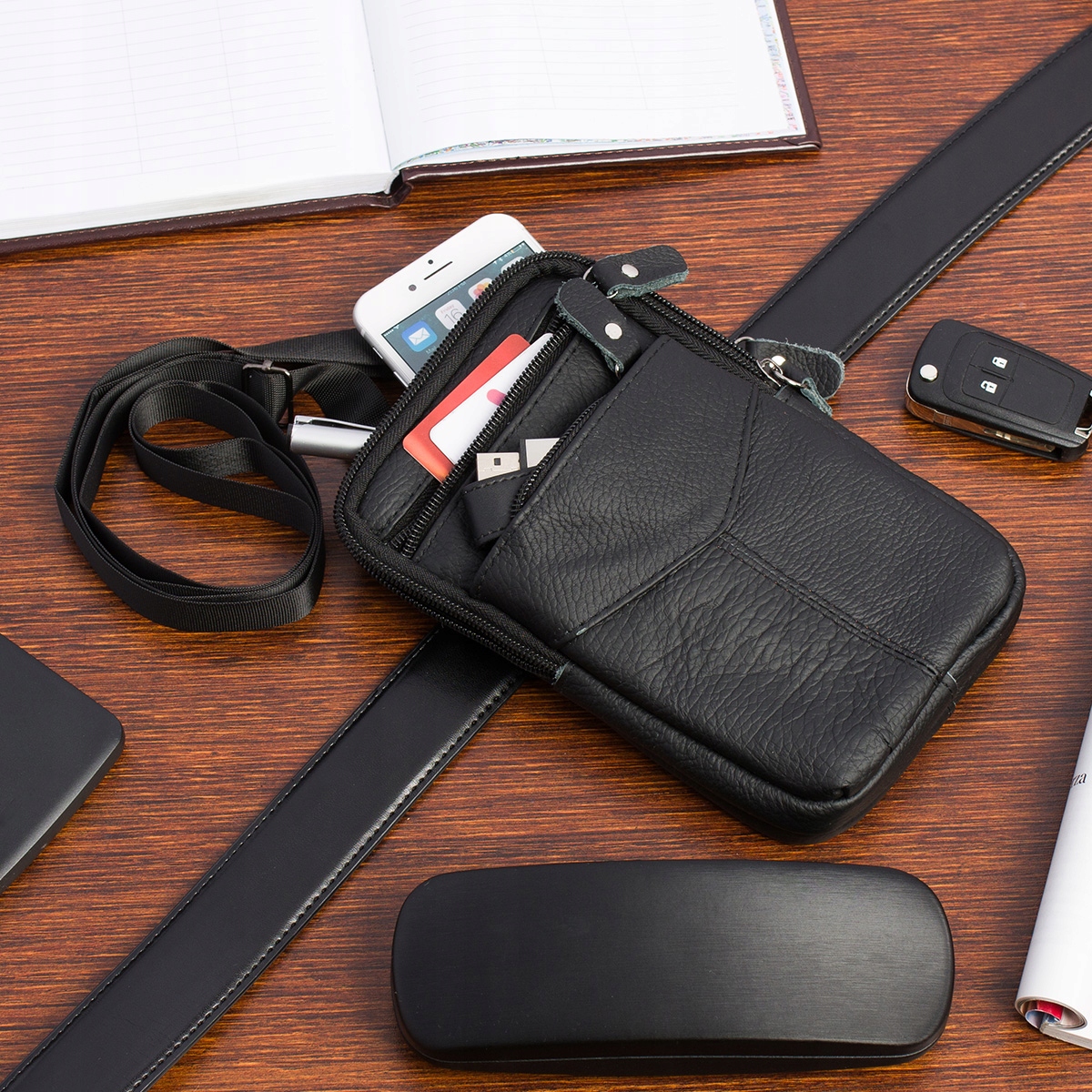 Moška usnjena torba za telefon z naramnico, prostorna, črna Celoten opis