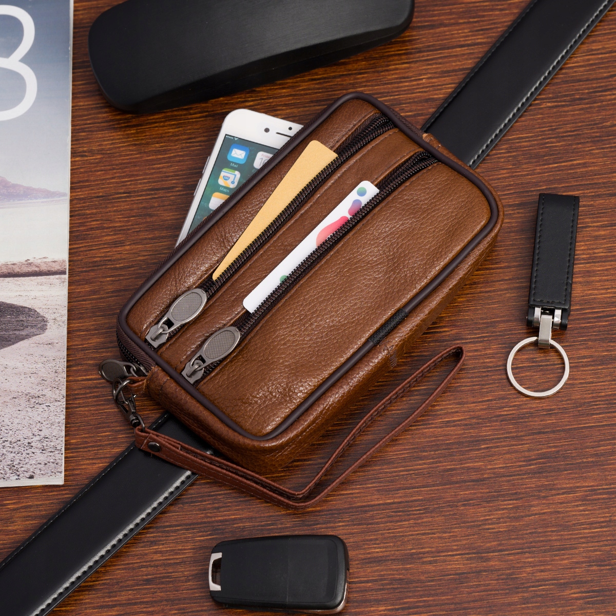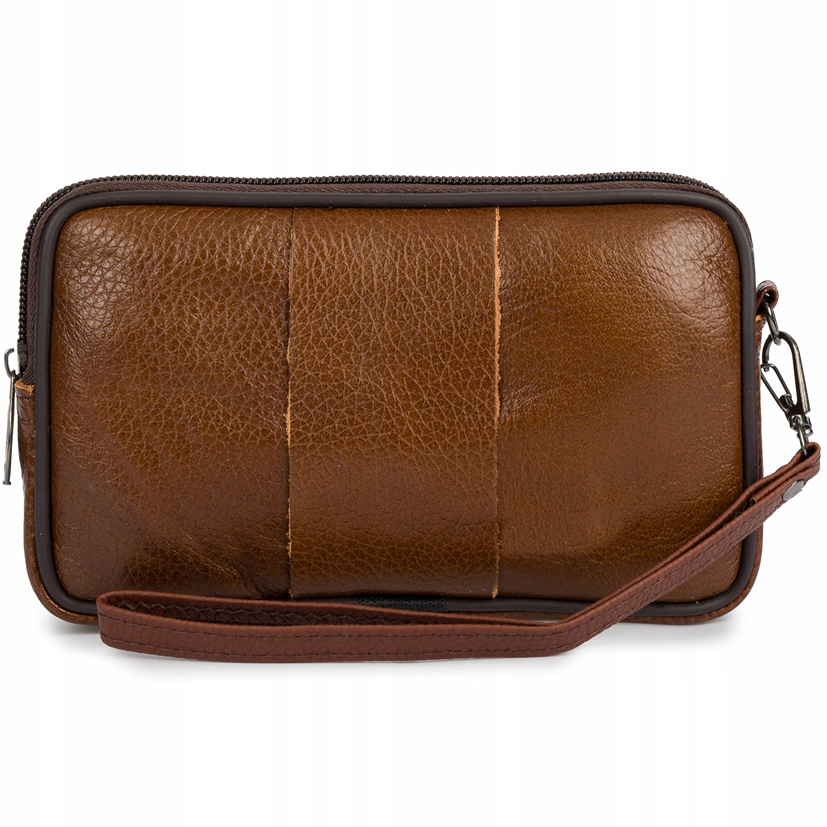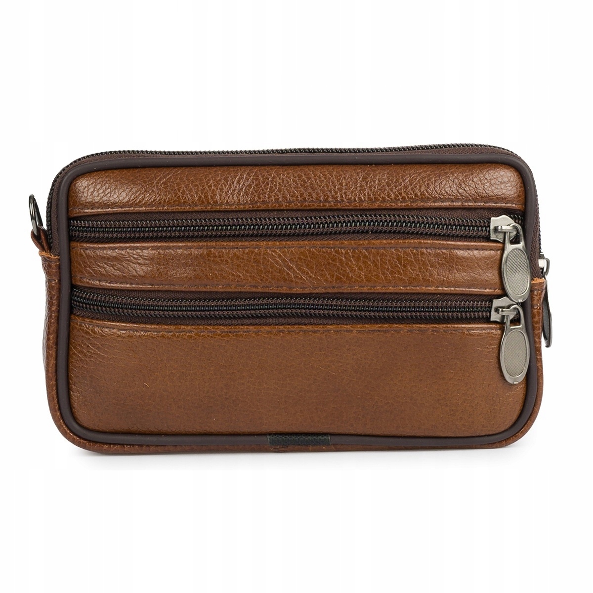 Moška usnjena torbica za telefon in pas, prostorna, svetlo rjava Celoten opis