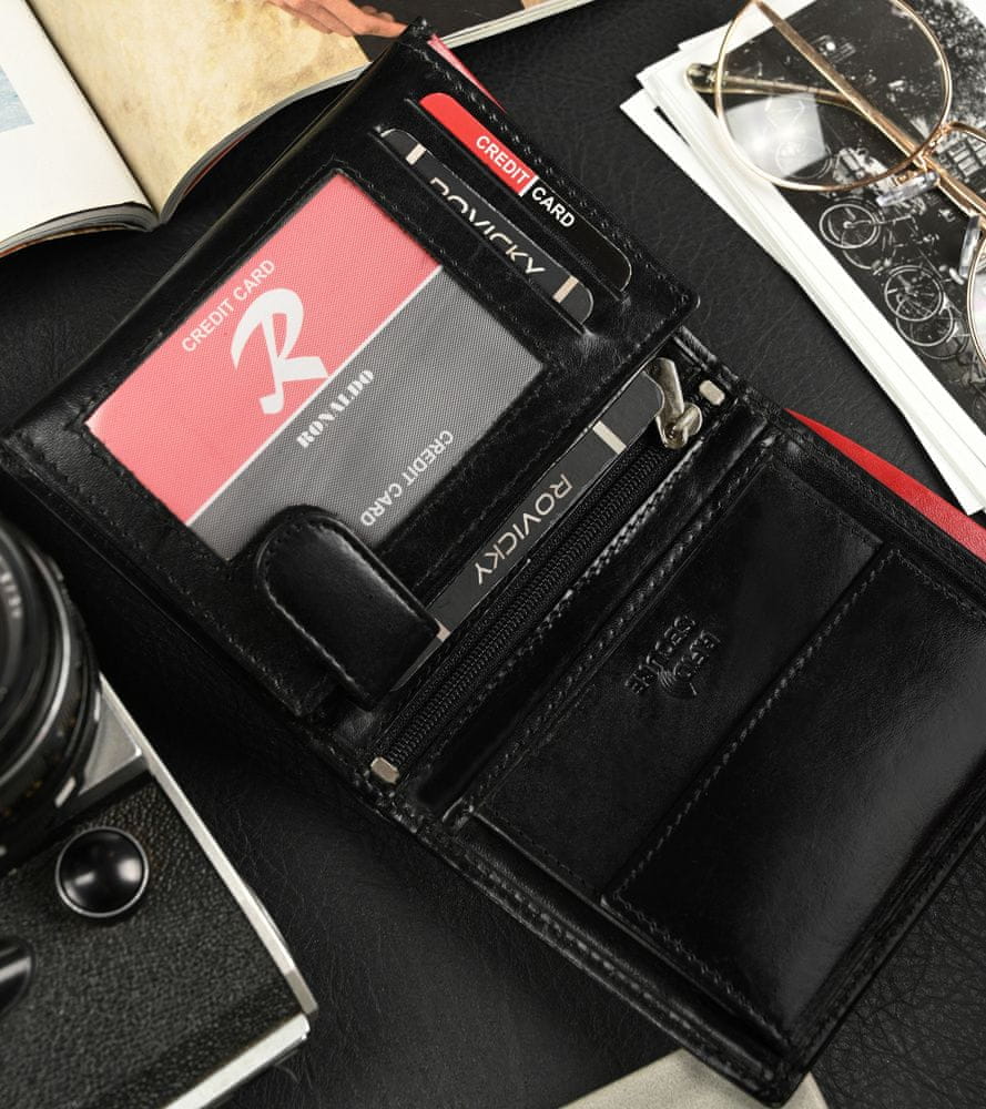 Iskreno je treba priznati, da ta denarnica Ronaldo® izgleda res dobro Je velika in prostorna. Kdo med nami danes ne nosi veliko kartic in dokumentov? Organizacija notranjosti vam omogoča, da jih veliko shranite v denarnico.