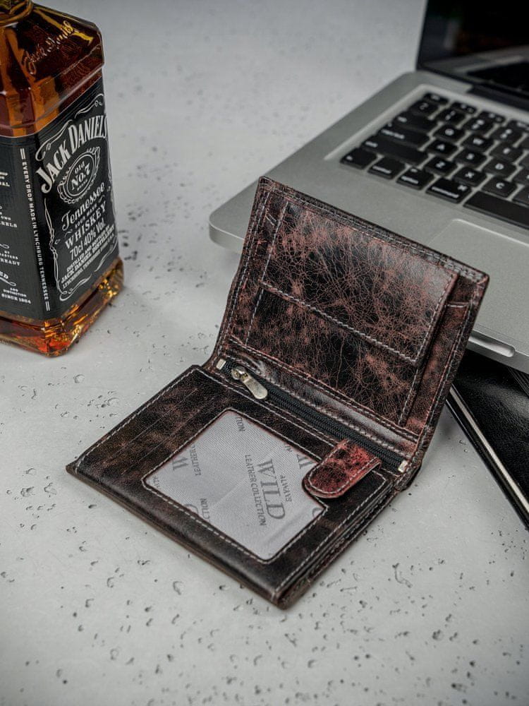 Denarnica je pakirana v elegantni škatli z logotipom podjetja.     Vedno divji