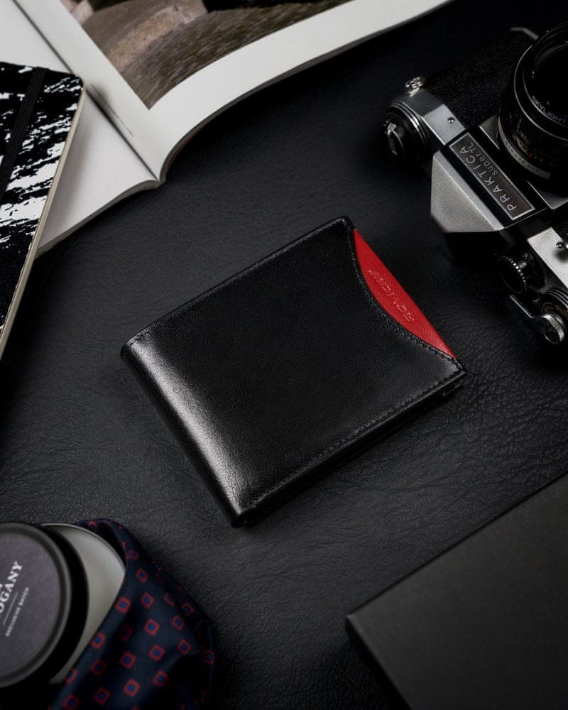 •  2 Široki, odprti žepi za bankovce.     To število žepov vam bo omogočilo shranjevanje znatne količine papirnatega denarja v denarnici. To število predalov vam bo omogočilo tudi nadaljnjo organizacijo denarja v valute, če uporabljate več kot le poljske zlote.