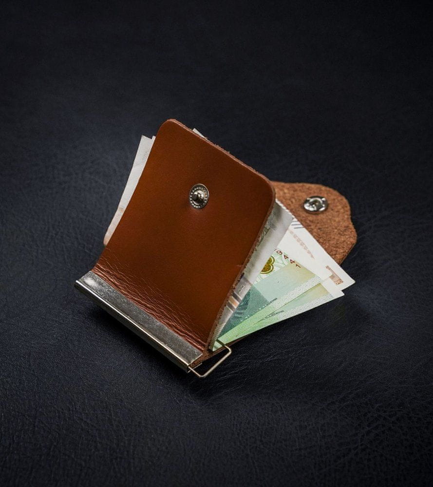 Pravokotna denarnica za bankovce iz pravega usnja s kovinskim robom