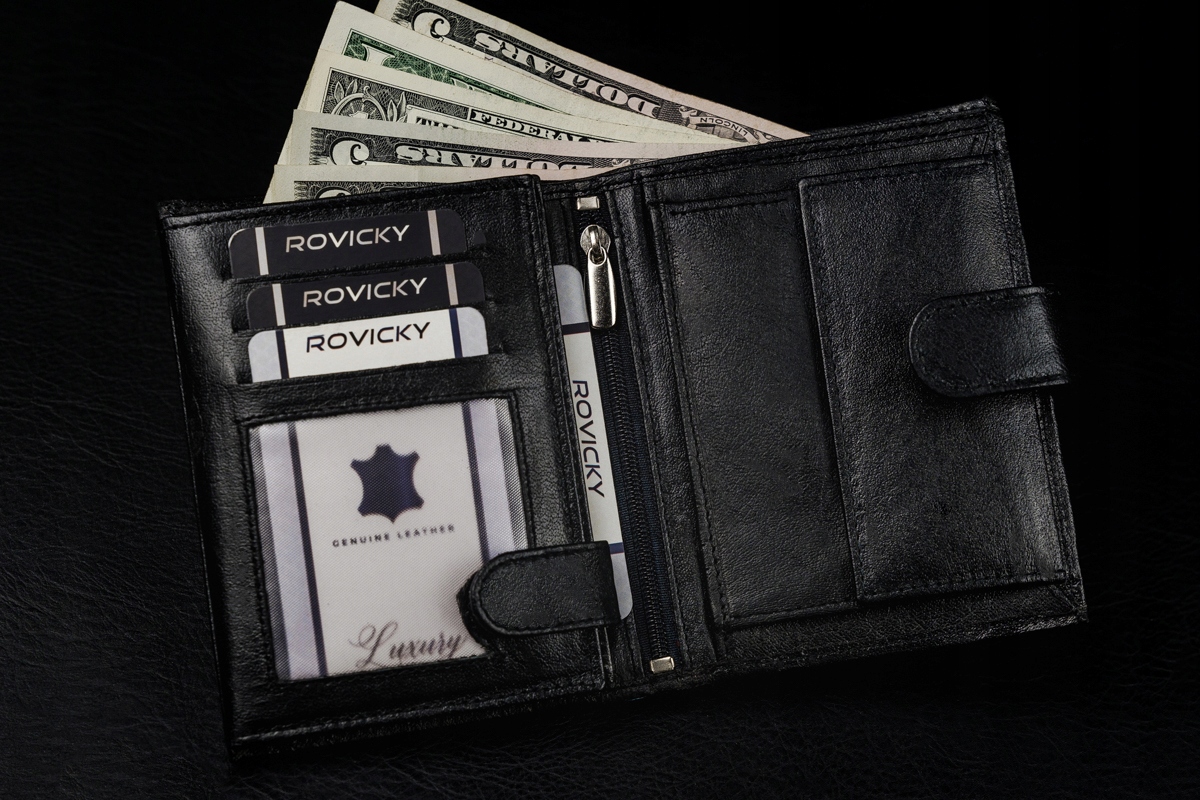 Kovance lahko shranite v žep z robustnim zapiranjem na gumb ;☑️ Denarnica ima 2 široka žepa za bankovce po celotni dolžini ; Dvojni žep je uporaben za moške, ki uporabljajo dve valuti.