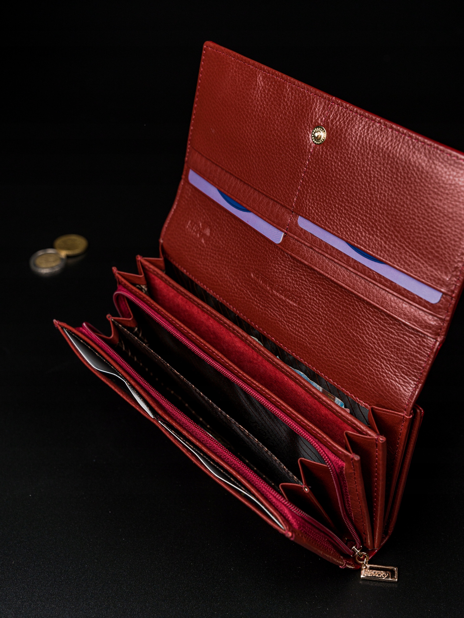 Ženska usnjena denarnica z RFID zaščito, velika, pravo usnje