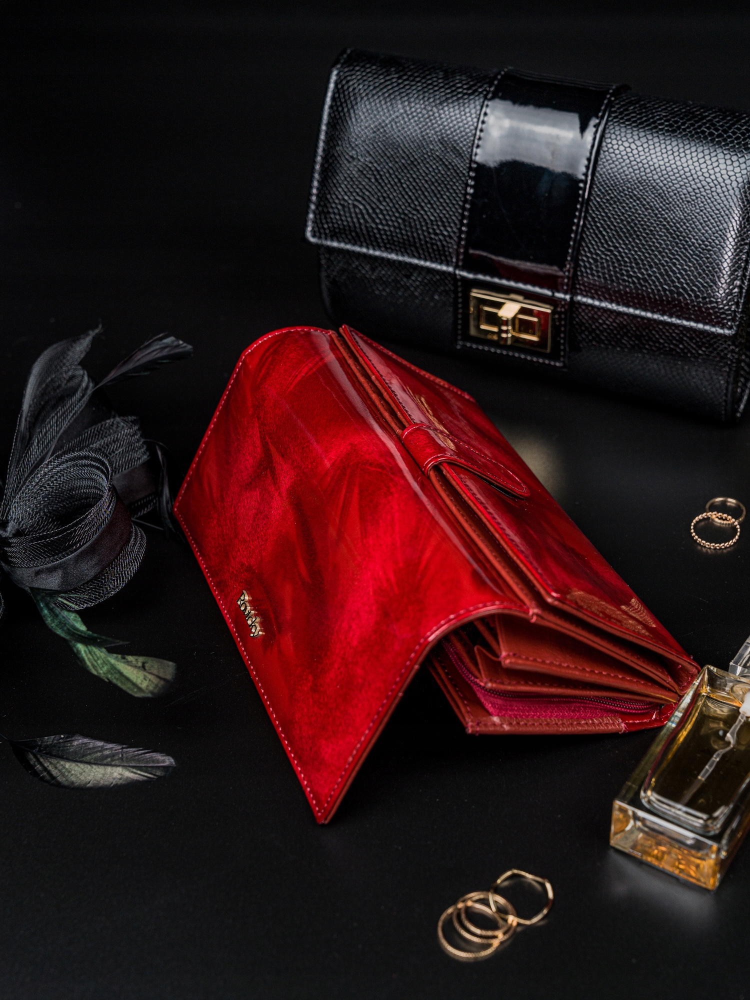 Ta izjemno praktična in elegantna denarnica v edinstvenem rdečem odtenku, ki odbija svetlobo v več barvah, je kot nalašč za ljubitelje manikure z mačjim očesom. Zdaj lahko svoje najljubše stile nohtov uskladite z našimi izdelki.