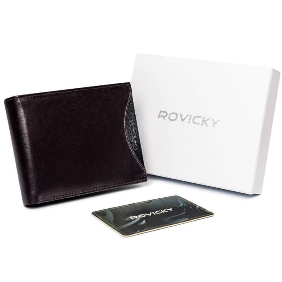 Široka, originalna moška denarnica iz naravnega zrnatega usnja z RFID – Rovicky Celoten opis