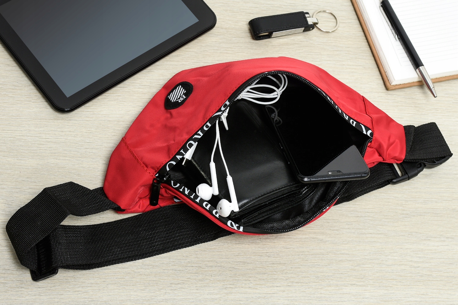• V torbico lahko shranite predmete , kot so denarnica, telefon ali ključi,