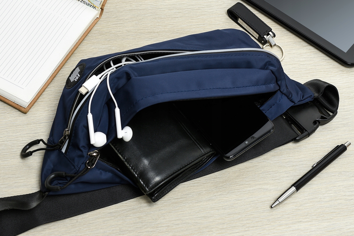 Torbica za okoli pasu, torbica za okoli bokov, prostorna, vodoodporna, s pasom, temno modra Celoten opis
