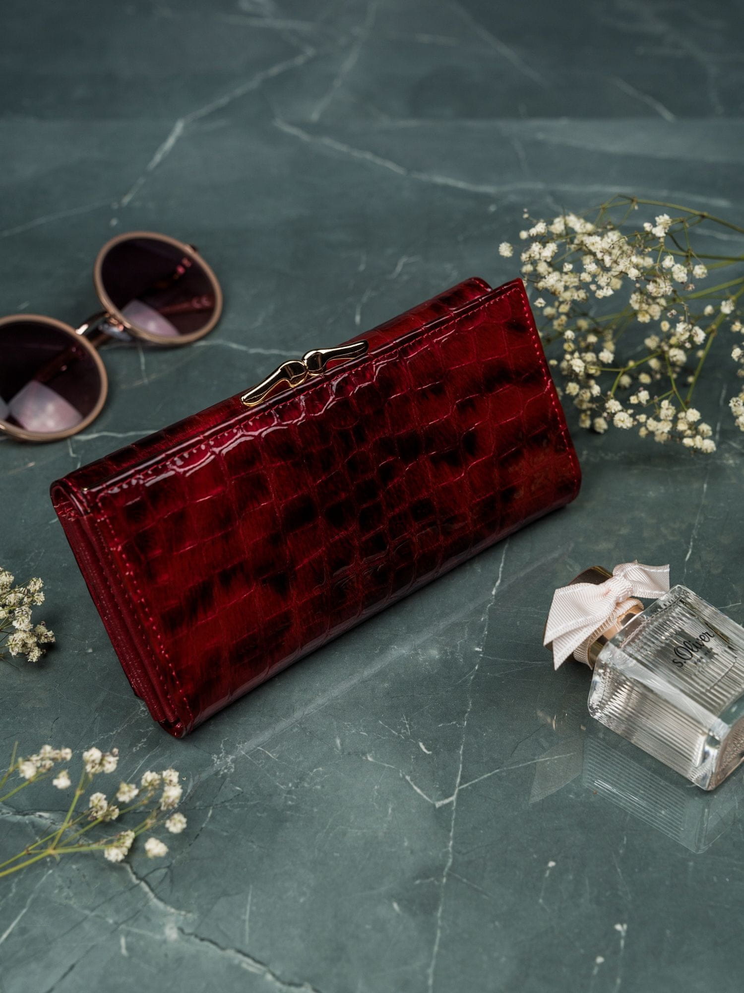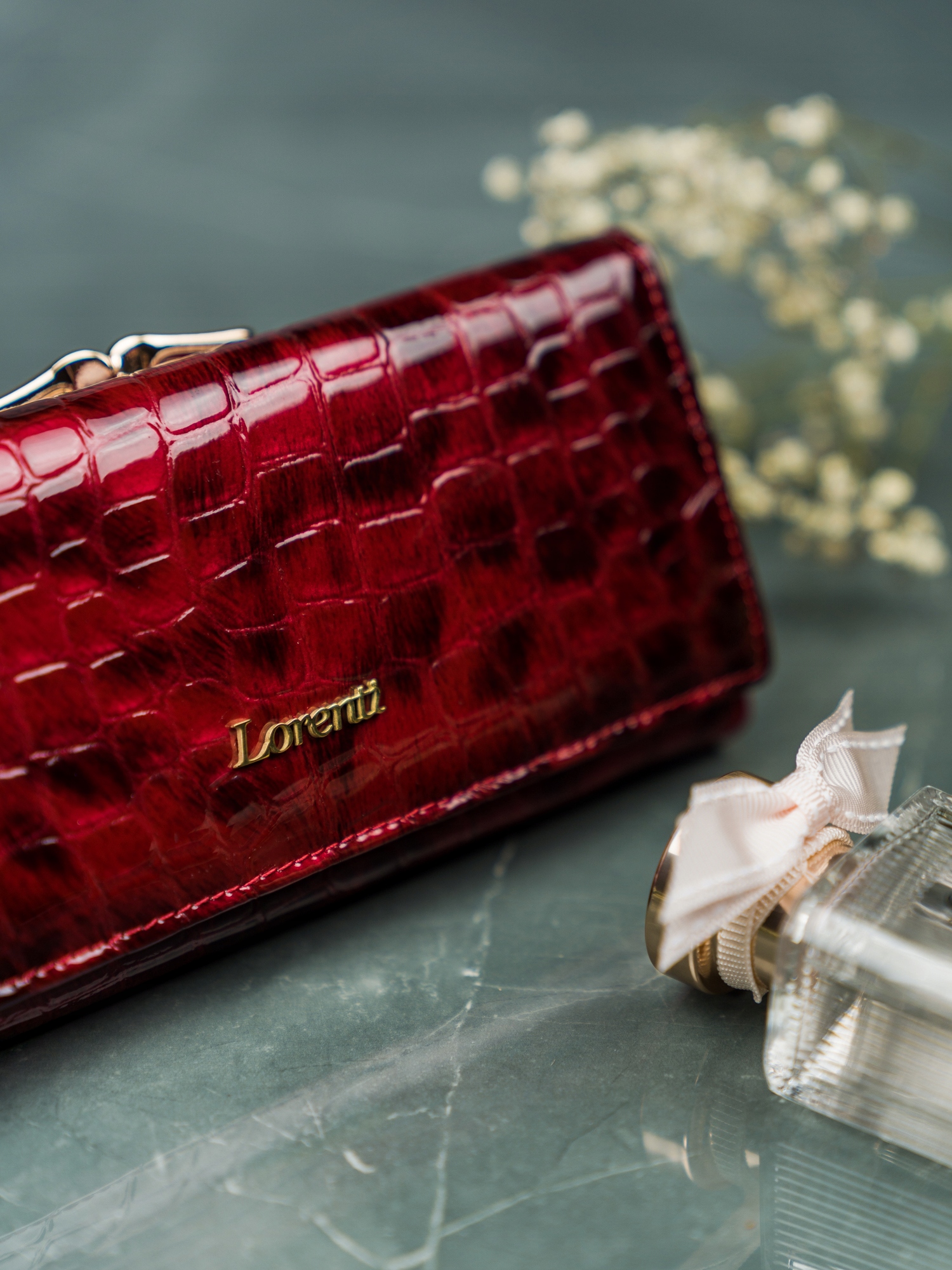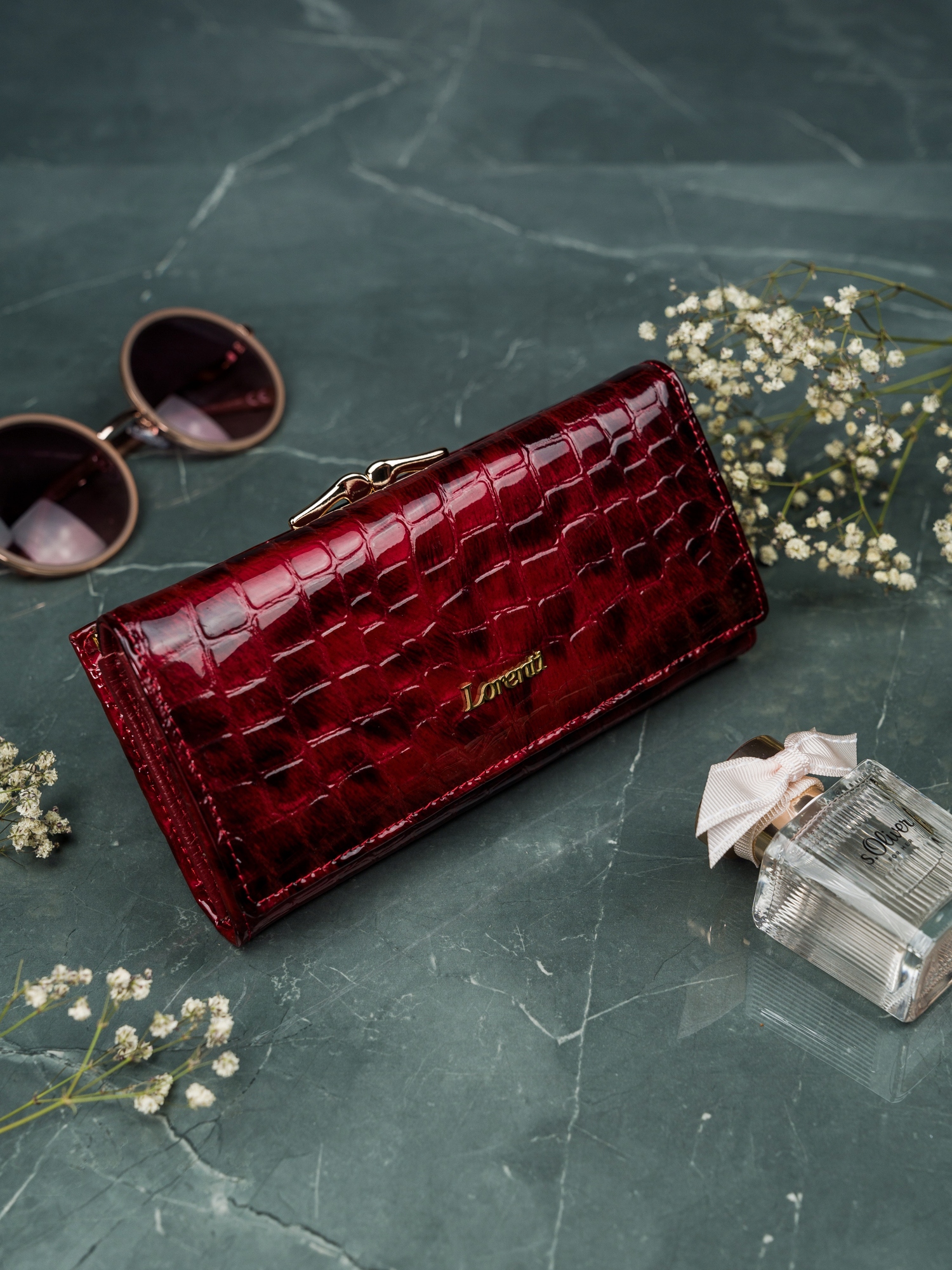 Velika ženska lakirana usnjena denarnica z zaponko Lorenti® RFID