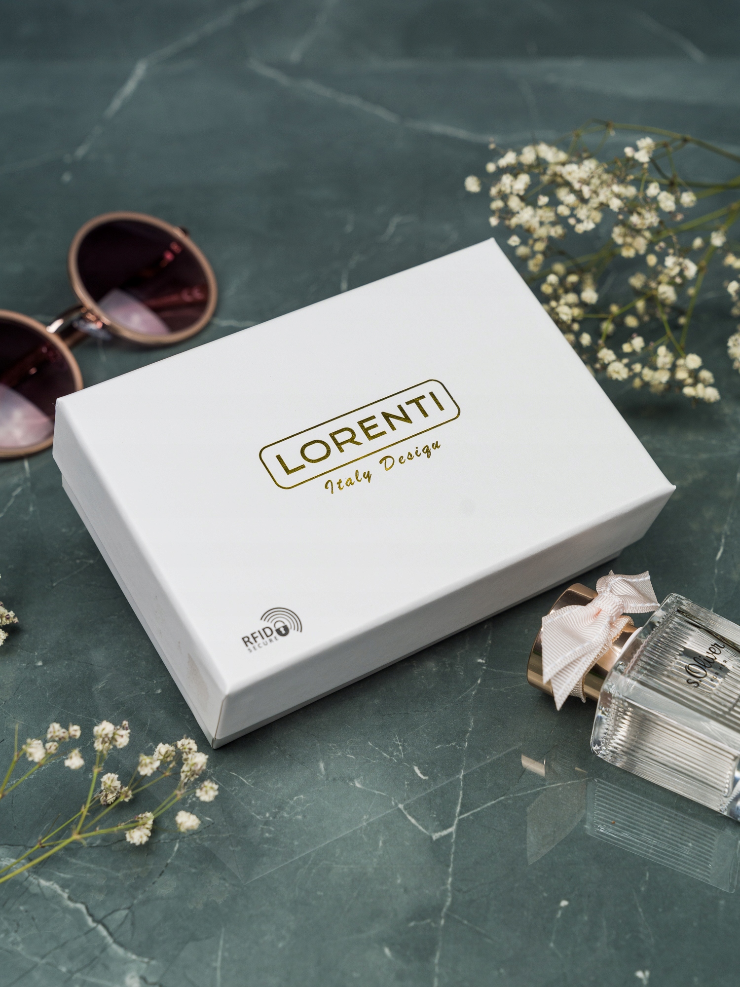 Denarnica je pakirano v škatli z blagovno znamko Lorenti® . Odlično kot darilo. To je izjemno pomembno, če je denarnica namenjena ljubljeni osebi. Ni vam več treba izgubljati časa in denarja z iskanjem darilne embalaže. Dovolj je okrasni trak ali pentlja in lahko se veselite veselja prejemnika.