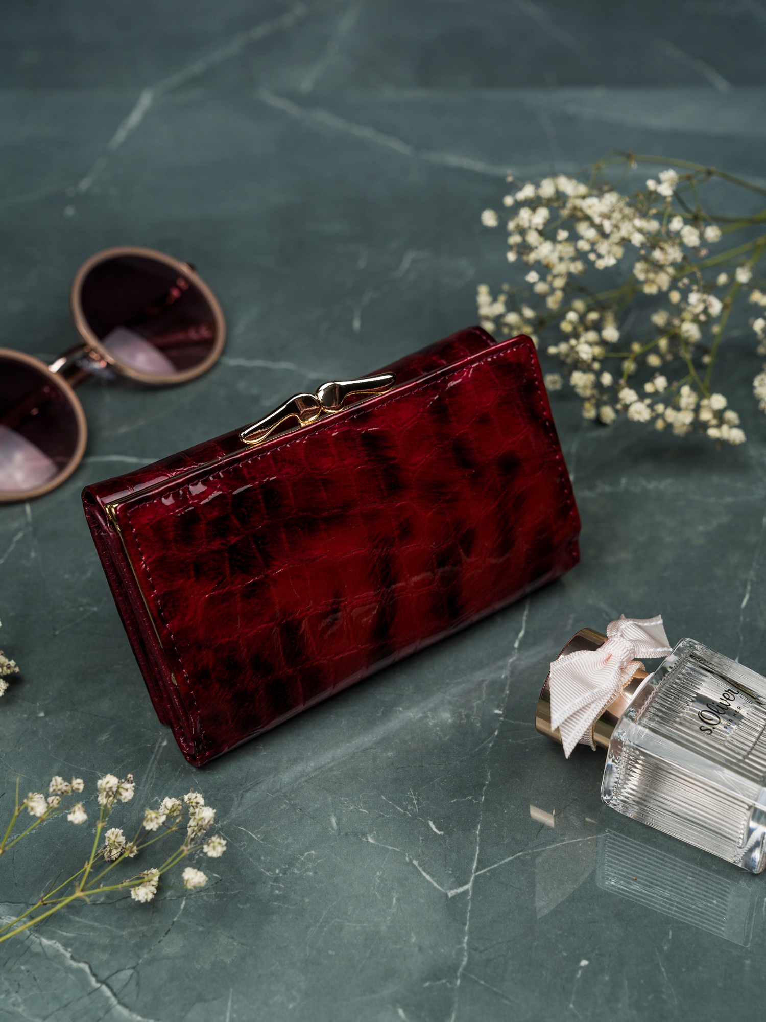 Ženska denarnica iz lakiranega usnja Lorenti, rdeča, srednje velika