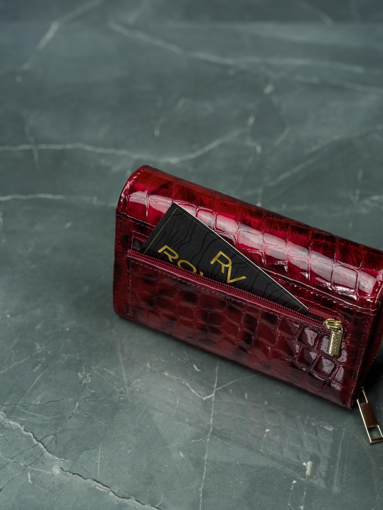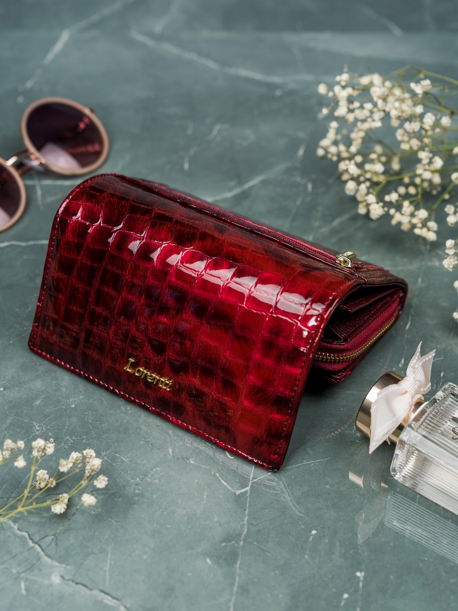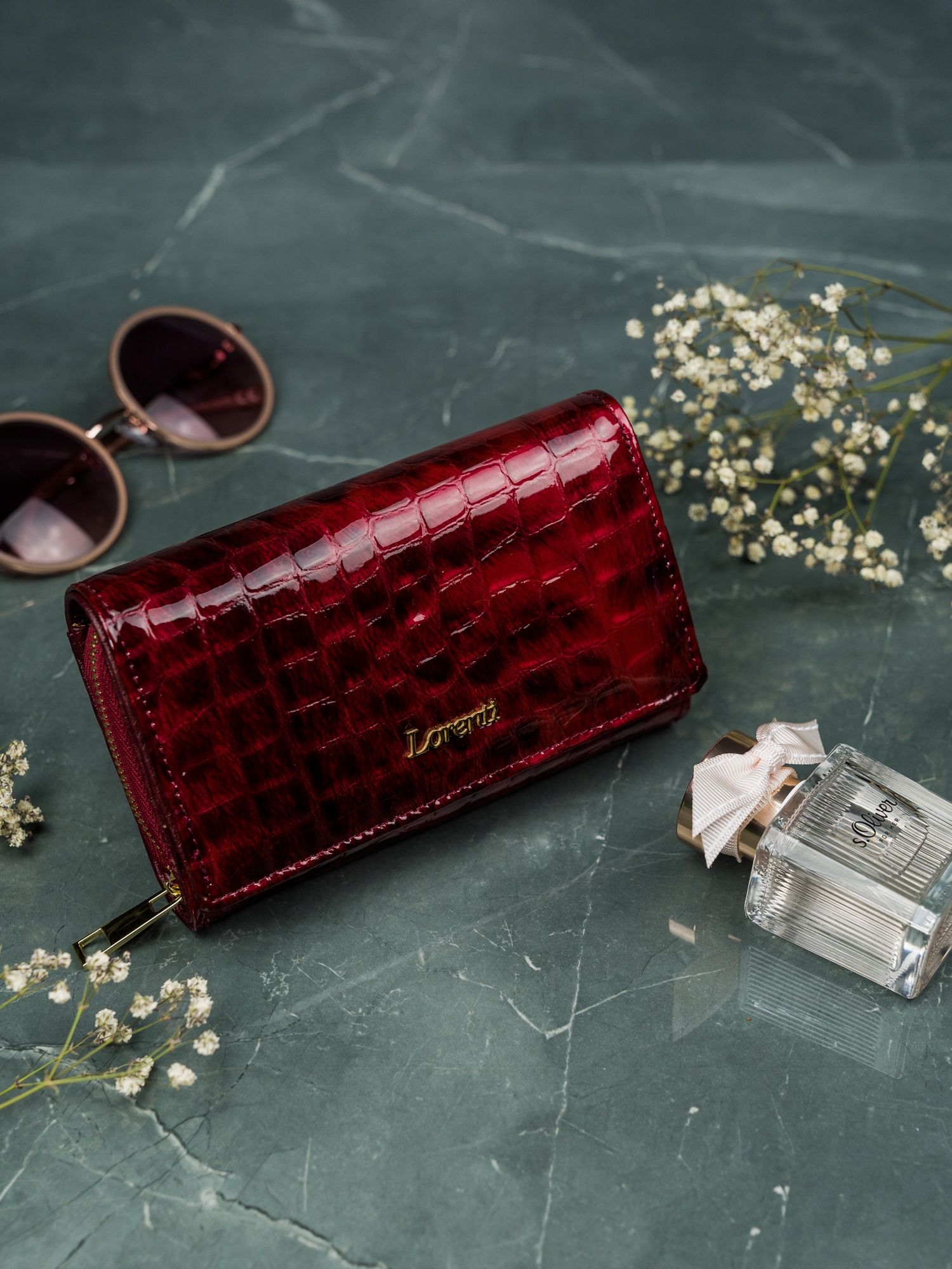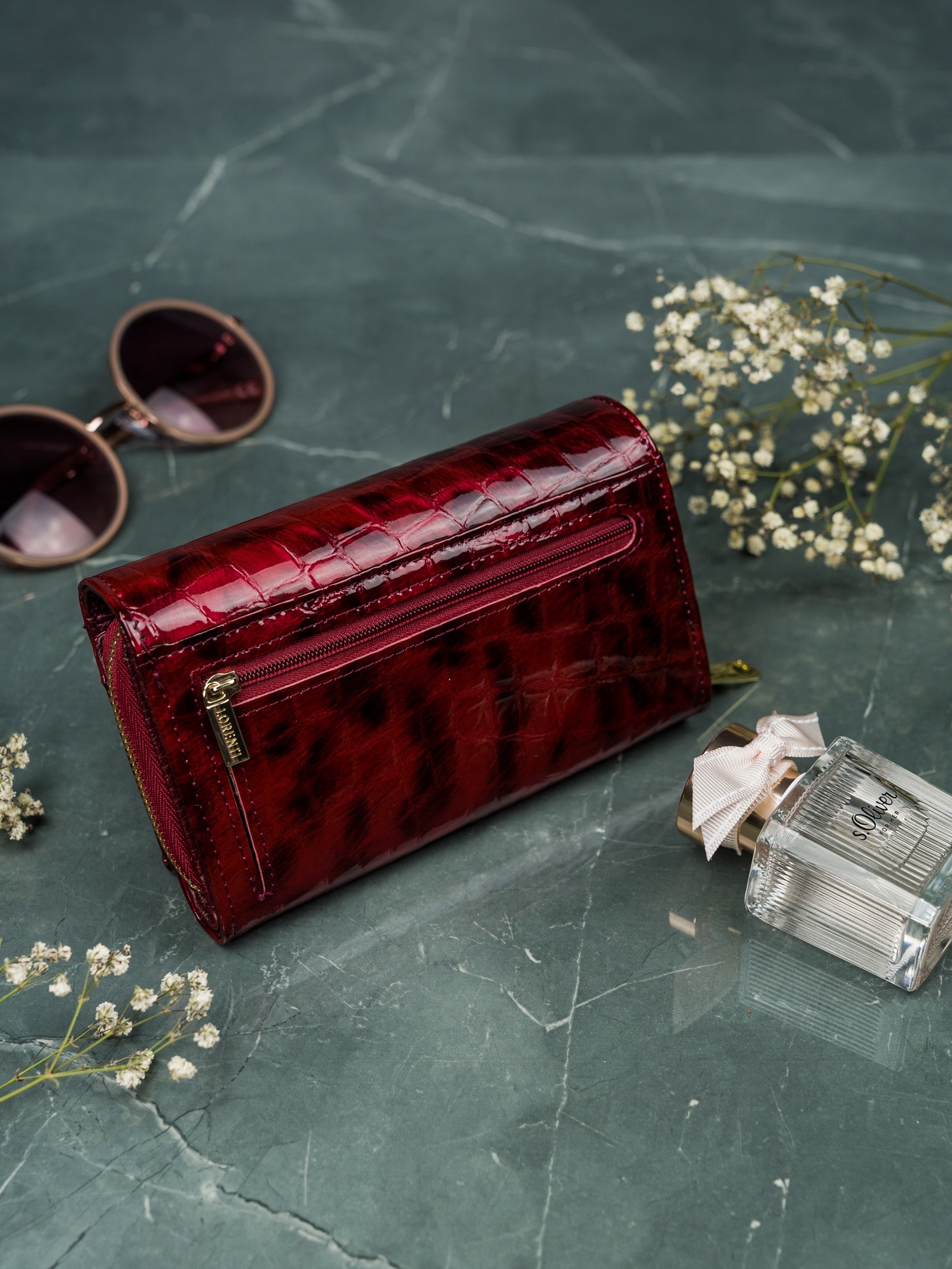 Ženska denarnica Lorenti iz lakiranega usnja s kačjim vzorcem, visoka ločljivost
