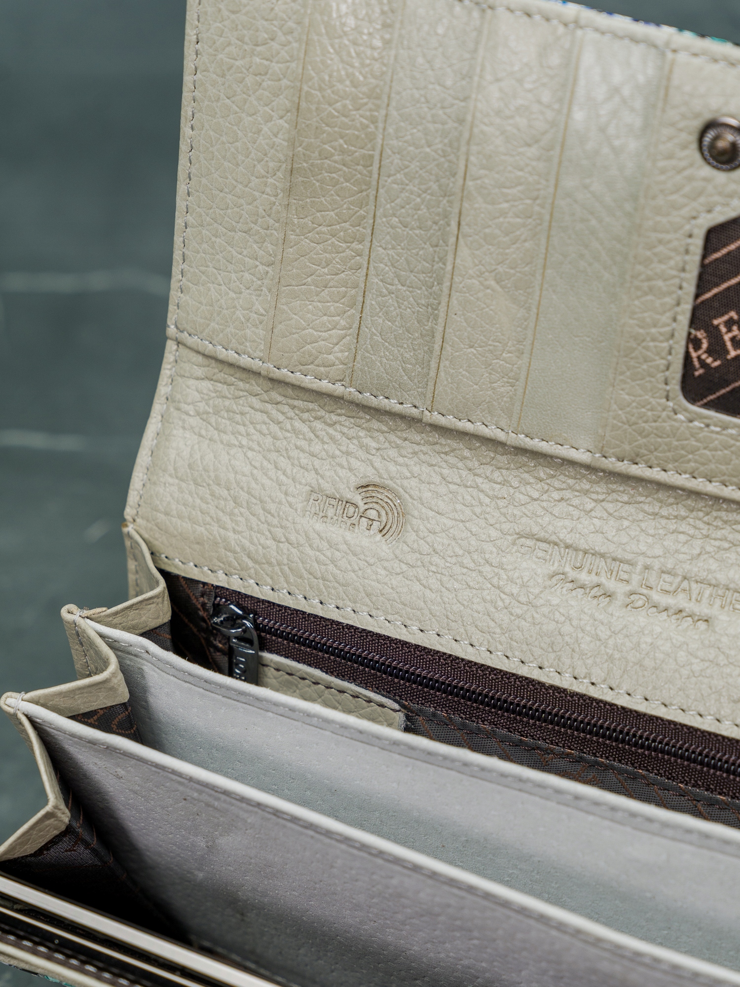 Denarnica z značajem, edinstvenim slogom in izjemno vzdržljivostjo. Vsaka denarnica je popolnoma izdelana iz visokokakovostnega pravega usnja. Vrhunski izdelek Za najzahtevnejše ženske.