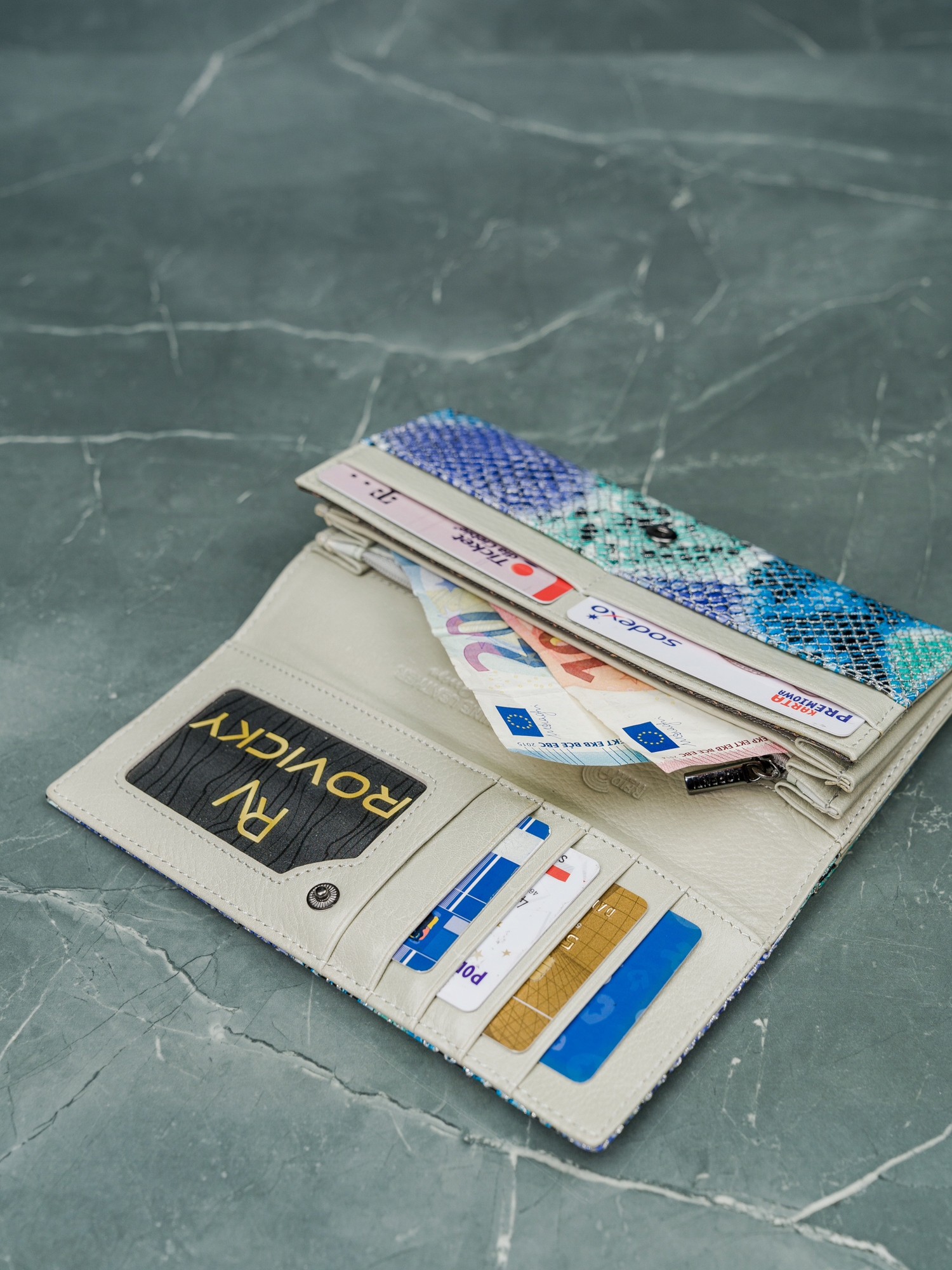 Denarnica z značajem, edinstvenim slogom in izjemno vzdržljivostjo. Vsaka denarnica je brezhibno izdelana iz visokokakovostnega pravega usnja. Vrhunski izdelek Za najzahtevnejše ženske.