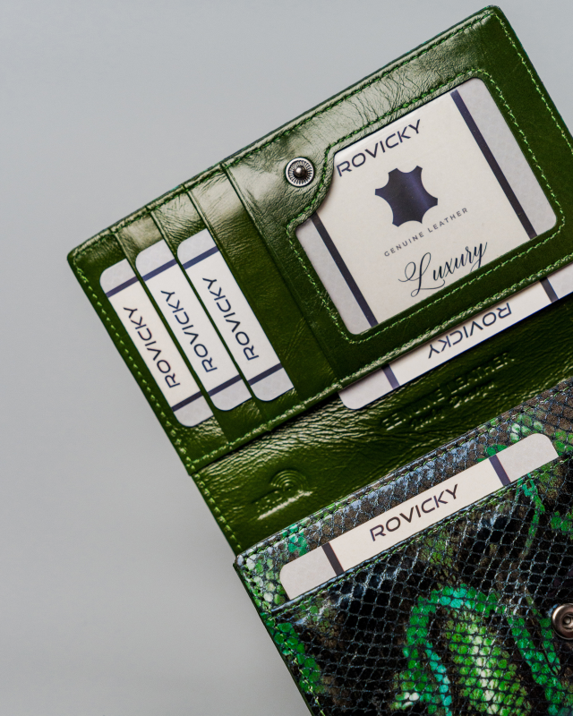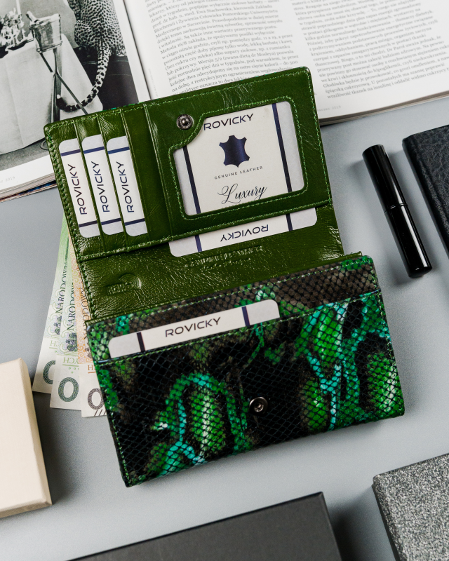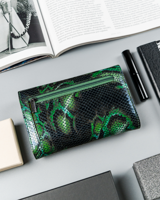 Elegantna ženska denarnica s klasičnim dizajnom in čudovito teksturo, ki realistično posnema kačjo kožo. Popolna za skoraj vsako priložnost. Znebite se dolgčasa v svoji garderobi in investirajte v dodatek s karakterjem!