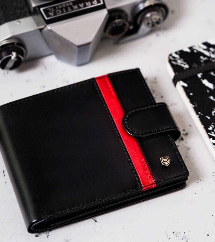 | Sprednji del denarnice je okrašen z elegantno rdečo črto; |