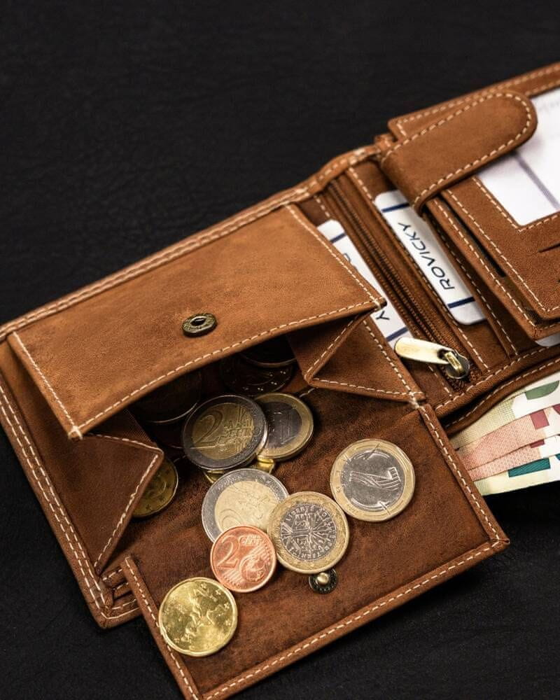 •      V žepe za bankovce in kovance lahko spravite zadostno količino gotovine.     kovanci