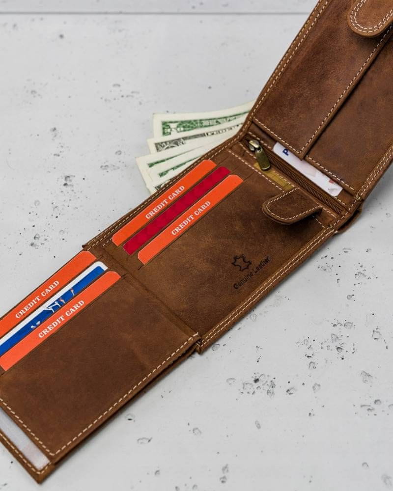 | V denarnico zlahka spravite kartice in dokumente, ki jih vsi nosimo s seboj, kot so osebne izkaznice in vozniška dovoljenja, pa tudi večje dokumente. Tukaj bo našlo svoje mesto tudi vaše prometno dovoljenje v ovitku Ministrstva za motorna vozila. Notranjost je zasnovana z neverjetno intuitivno zasnovo. |