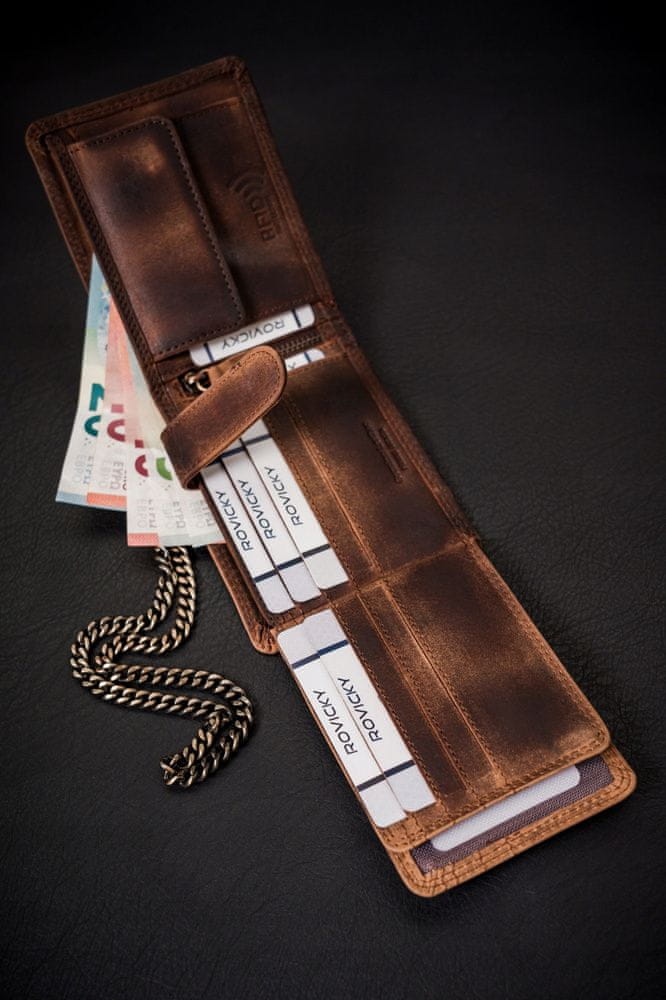 Denarnica ponuja veliko prostora za dokumente in gotovino. Ta model ustreza prometnemu dovoljenju brez ovitka;