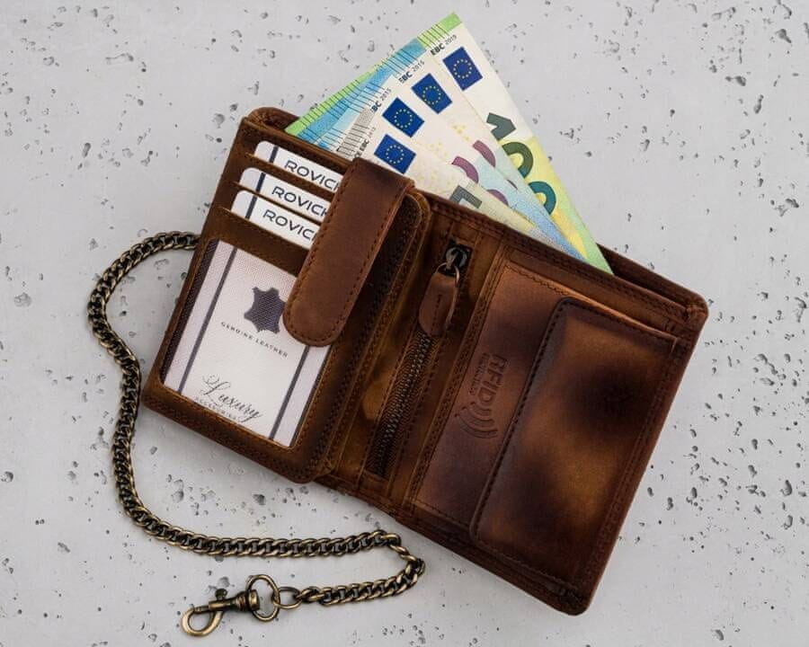 Velika moška usnjena denarnica z verižico