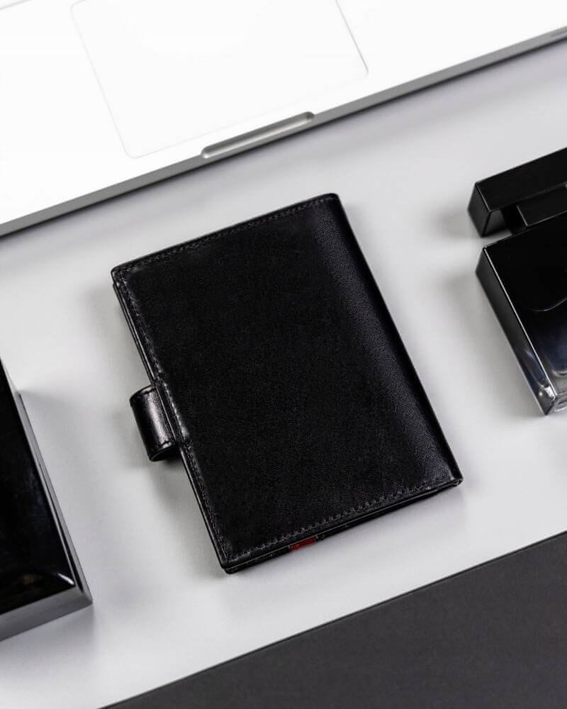 | Sprednji del denarnice je okrašen z elegantno rdečo črto; |