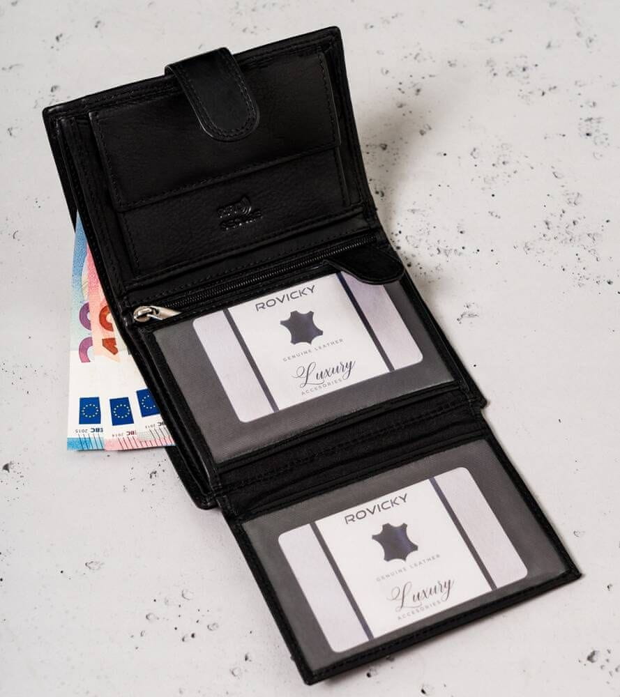 Visokokakovostna moška denarnica velike velikosti iz pravega usnja, ki: